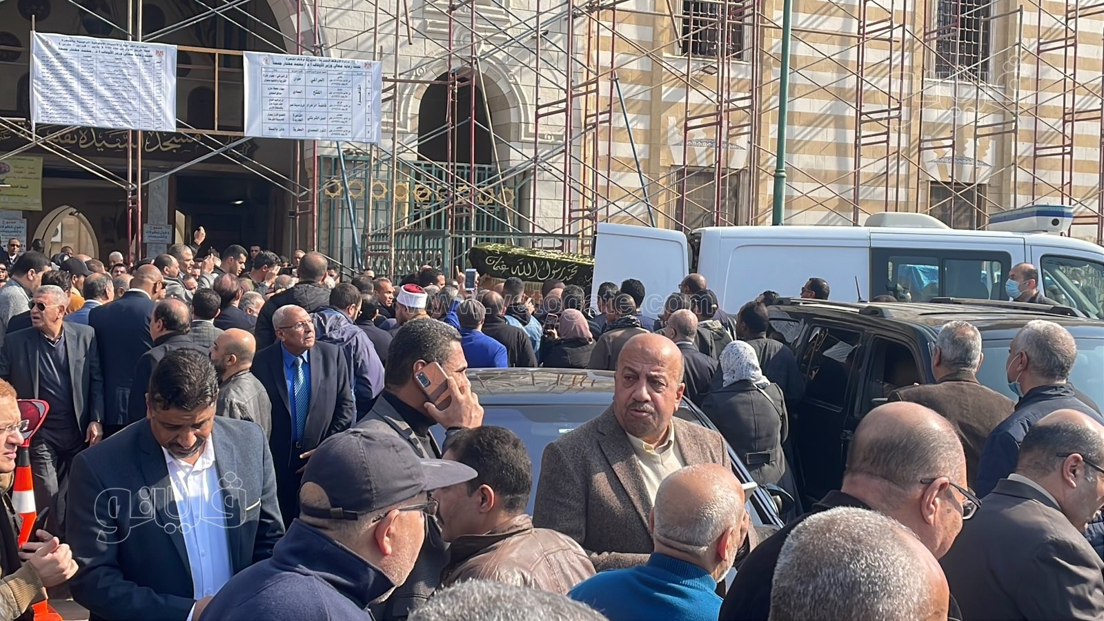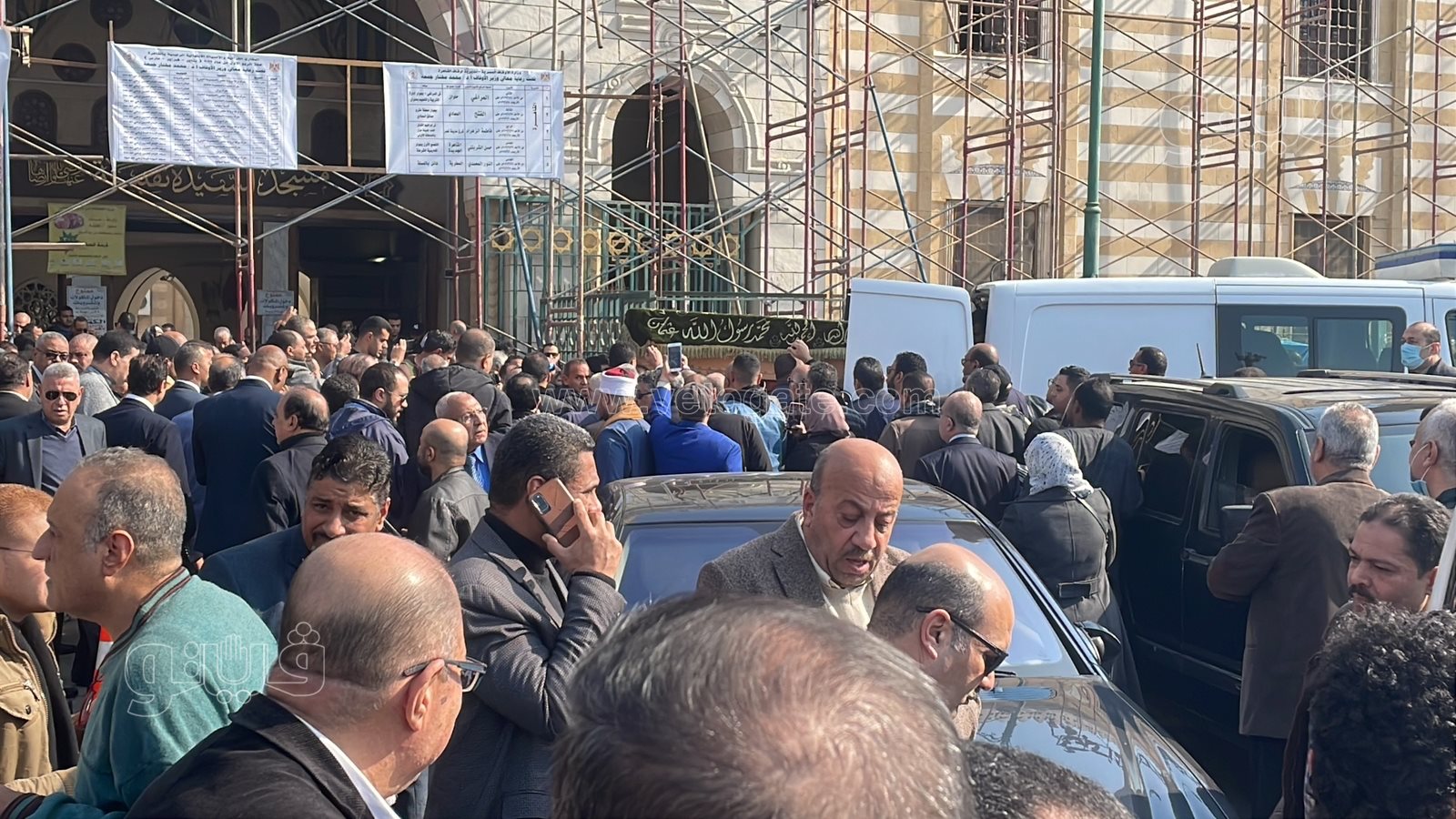 لحظة خروج جثمان وزير الداخلية الأسبق اللواء منصور العيسوى من مسجد السيدة نفيسة بعد صلاة الجنازة