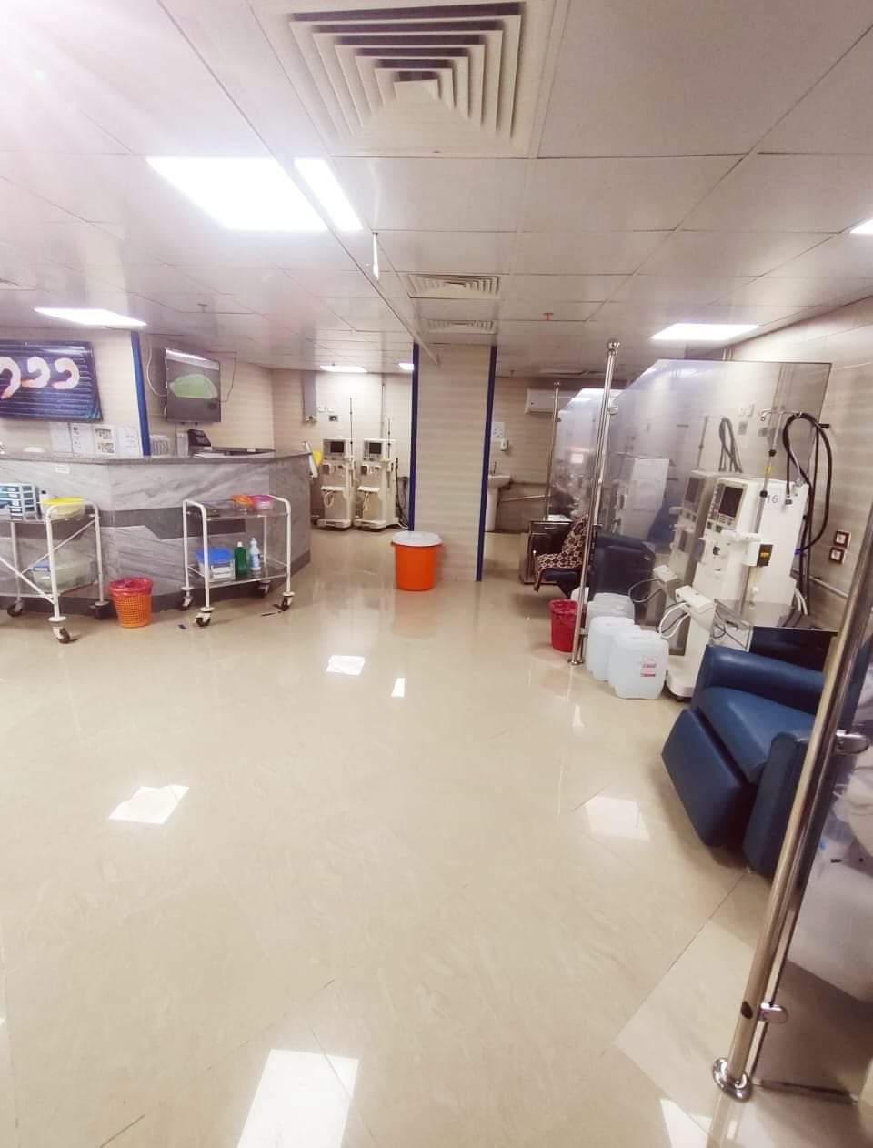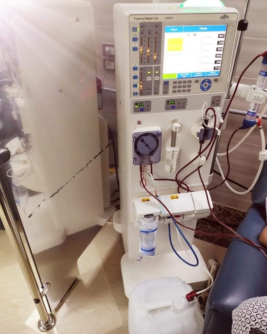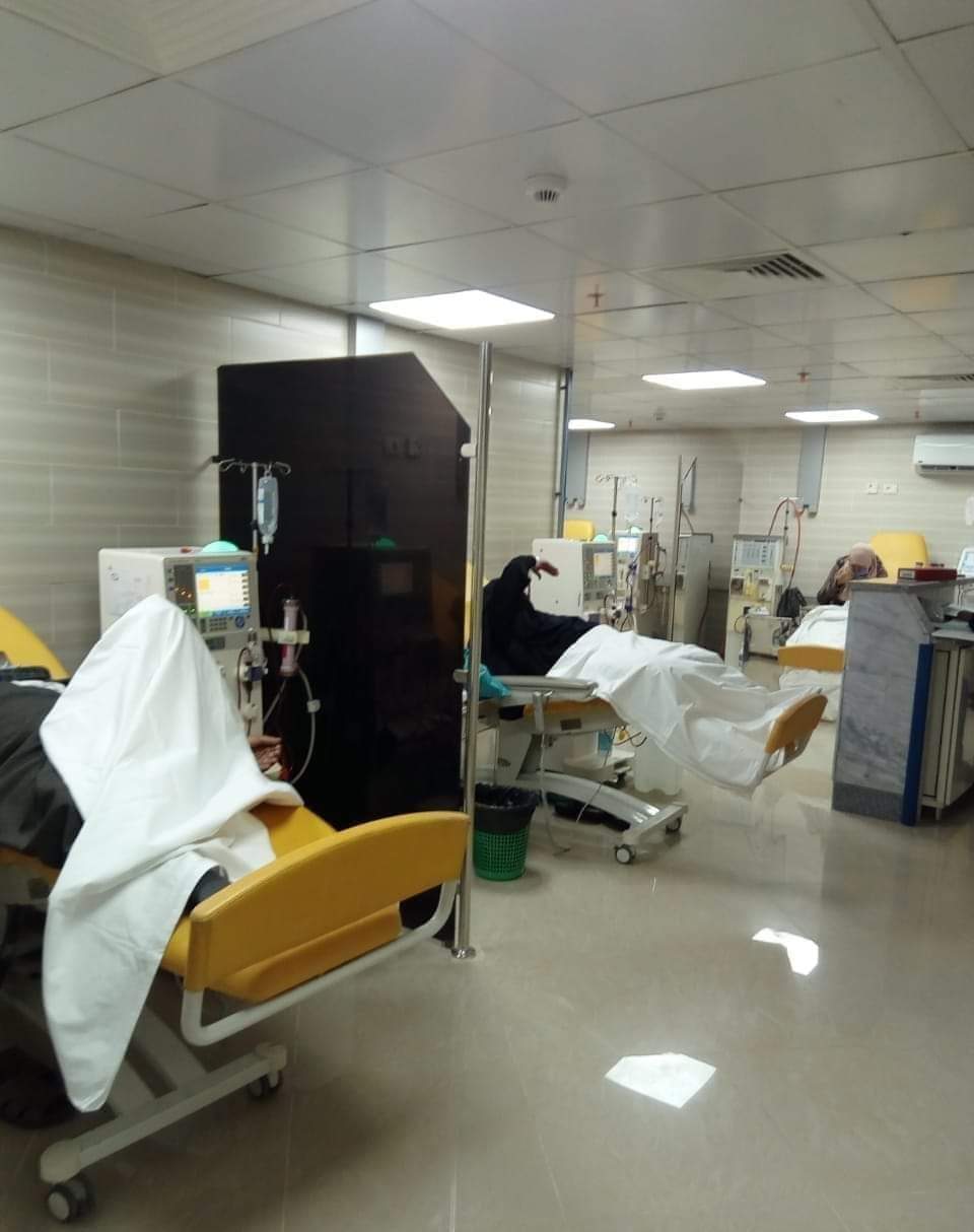 تزويد المستشفى بعدد 5 ماكينات كلي حديثة وجهاز سونار و10 أجهزة تنفس صناعي.