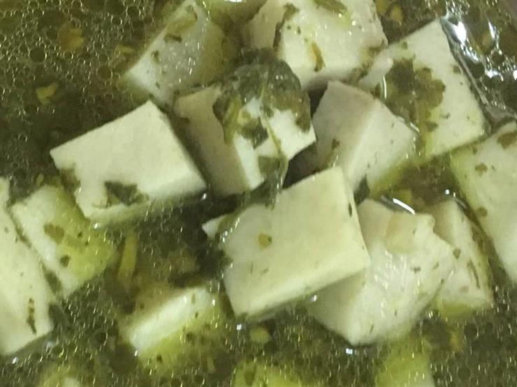 - بعدها نقوم بعمل السلق عن طريق وضع الثوم يقلب جيدا حتى يأخذ اللون الأحمر، ثم نضيف الكسبرة الجافة والسلق والكزبرة الخضراء ونقلب جيدا حتى يصفر لون الخضروات وتجف ماؤها.