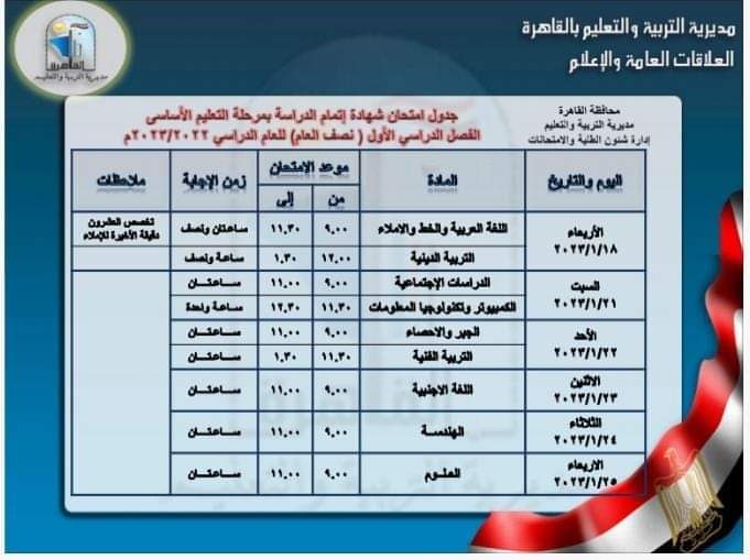 ونستعرض معكم فيما يأتي كافة التفاصيل الخاصة بجدول امتحانات شهادة الاعدادية للترم الأول بمحافظة القاهرة: