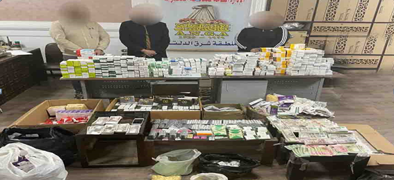 وعقب تقنين الإجراءات تم إستهدافهم وأمكن ضبطهم بسلسلة الصيدليات المشار إليها والمملوكة للصيدلى المشار إليه، وبحوزتهم (أكثر من 50 ألف قرص مؤثر ومخدر - 180 أمبول مخدر - كمية من بودرة دواء مغشوشة ومعدة للتعبئة وزنت 5 كيلو جرام - كمية من الكبسولات الفارغة والنشرات الداخلية والعلب المجهزة لتعبئة "الأدوية المغشوشة" - 120 كرتونة عسل منشط - مبالغ مالية عملات محلية وأجنبية - 3 سيارات - 5 هواتف محمولة).