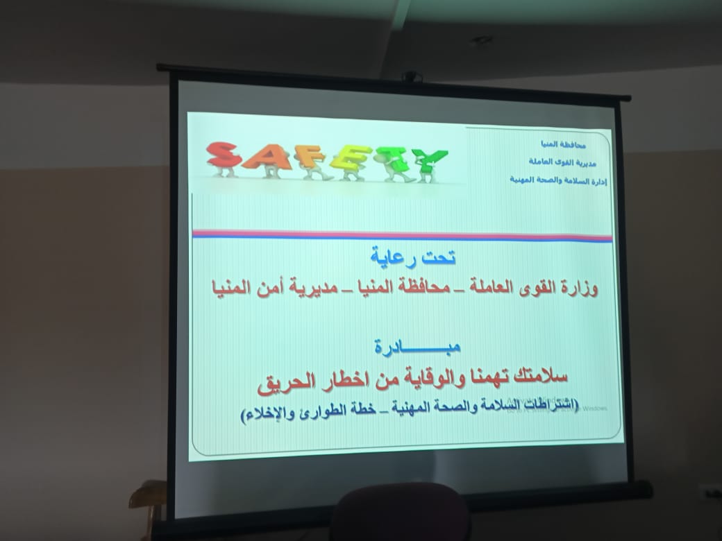وجاء ذلك تحت رعاية حسن شحاته وزير القوى العاملة ، واللواء أسامة القاضى محافظ المنيا وتحت إشراف الإدارة المركزية للسلامة والصحة المهنية وتأمين بيئة العمل بالوزارة.