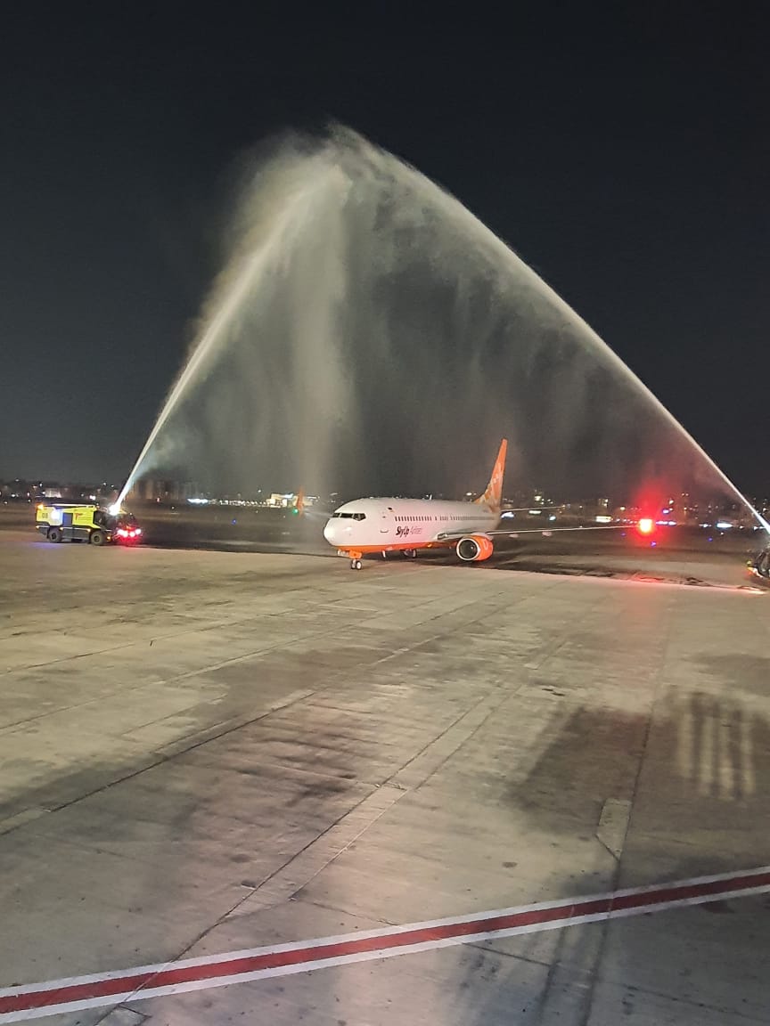 وقامت سلطات مطار القاهرة باستقبال الطائرة بمدافع المياه داخل أرض المهبط، وهو التقليد المتبع في افتتاح خطوط الطيران الجديدة او التي تستأنف رحلاتها بعد فترة توقف.