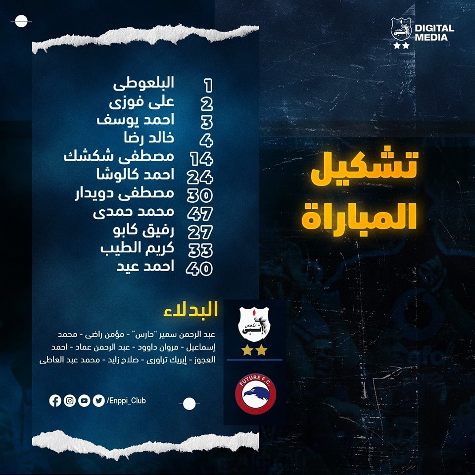 ويخوض كابتن طلعت يوسف مواجهة فيوتشر بالدوري المصري بتشكيل مكون من..