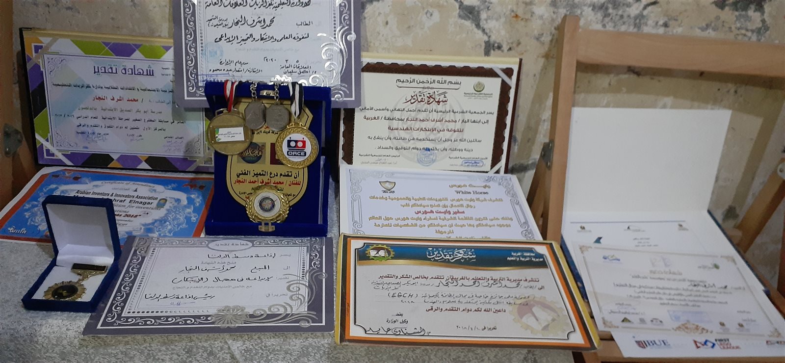 وأضافت: محمد منذ نعومة أظافره يمارسة ابتكاراته مستعينا ببعض الألعاب، وقد اخترع روبوتا للكشف عن المفرقعات باستخدام الطاقة الكهرومغناطيسية، وشارك في عدد من المسابقات وحصل على العديد من الجوائز.