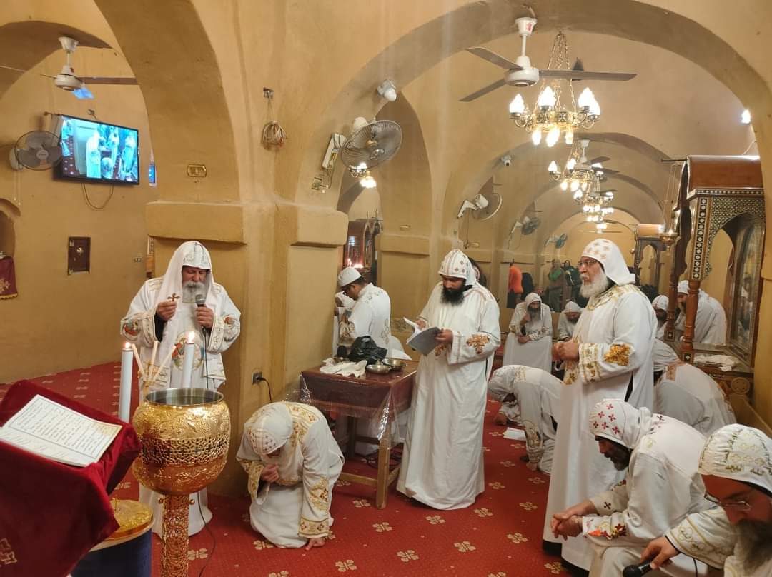 عيد الغطاس، أدى صلوات اللقان بدير الأنبا باخوميوس (الشايب) بالأقصر مجمع رهبان الدير، وسط تشديدات أمنية.
