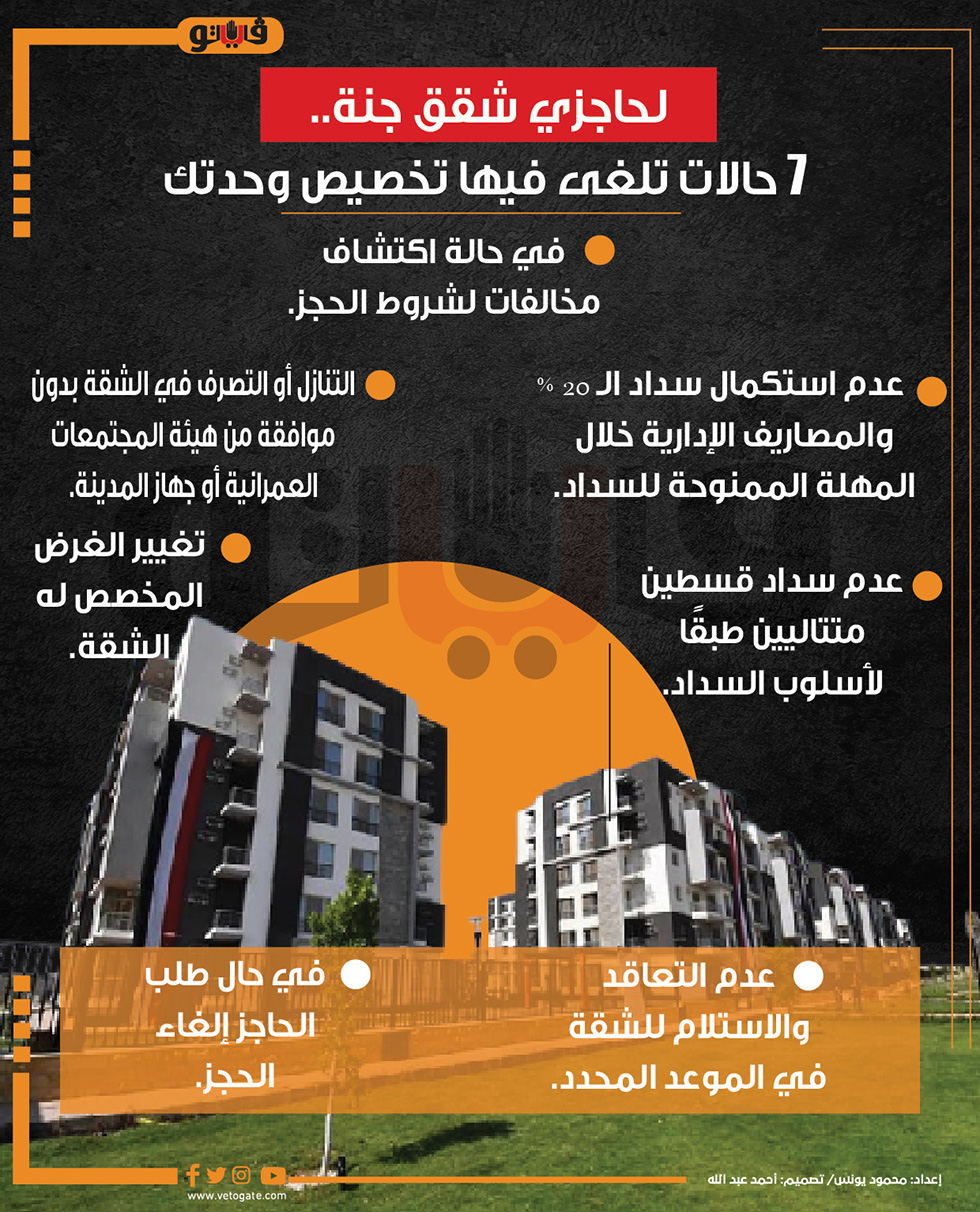 لحاجزي شقق جنة.. 7 حالات تلغى فيها تخصيص وحدتك (إنفوجراف)