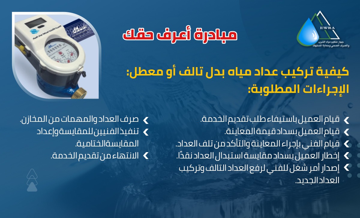 خطوات تركيب عداد مياه بدل تالف أو معطل (انفوجراف)