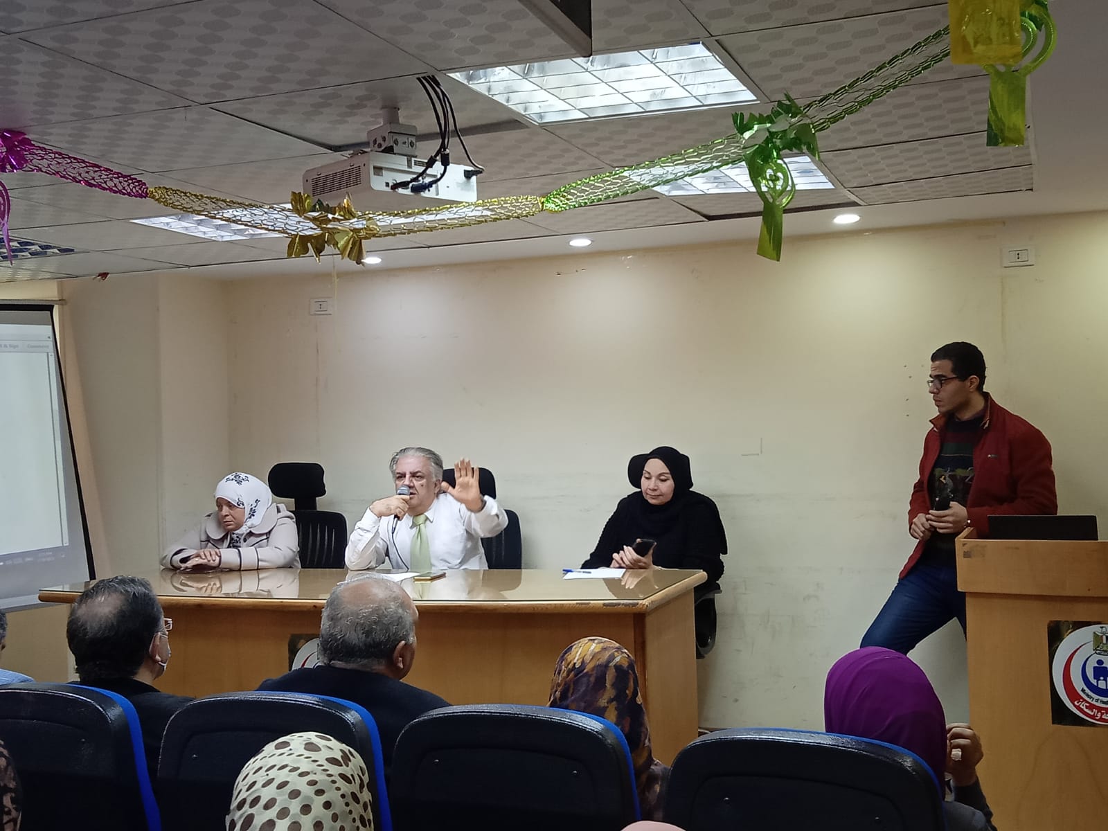 وفي نهاية الاجتماع تم تقديم عرض مصور لتوضيح السلبيات وسبل تلافي الاخطاء بمخازن الادارات ومخازن الطعوم والأدوية ومخزن المستهلك والمستديم.