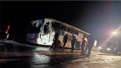 وكان لقي شخصين مصرعهما وأصيب ١٣ آخرين، في الساعات الأولى من اليوم الخميس، نتيجة حادث تصادم أتوبيس عمال مصنع مع سيارة نقل على طريق "المطرية - بورسعيد".