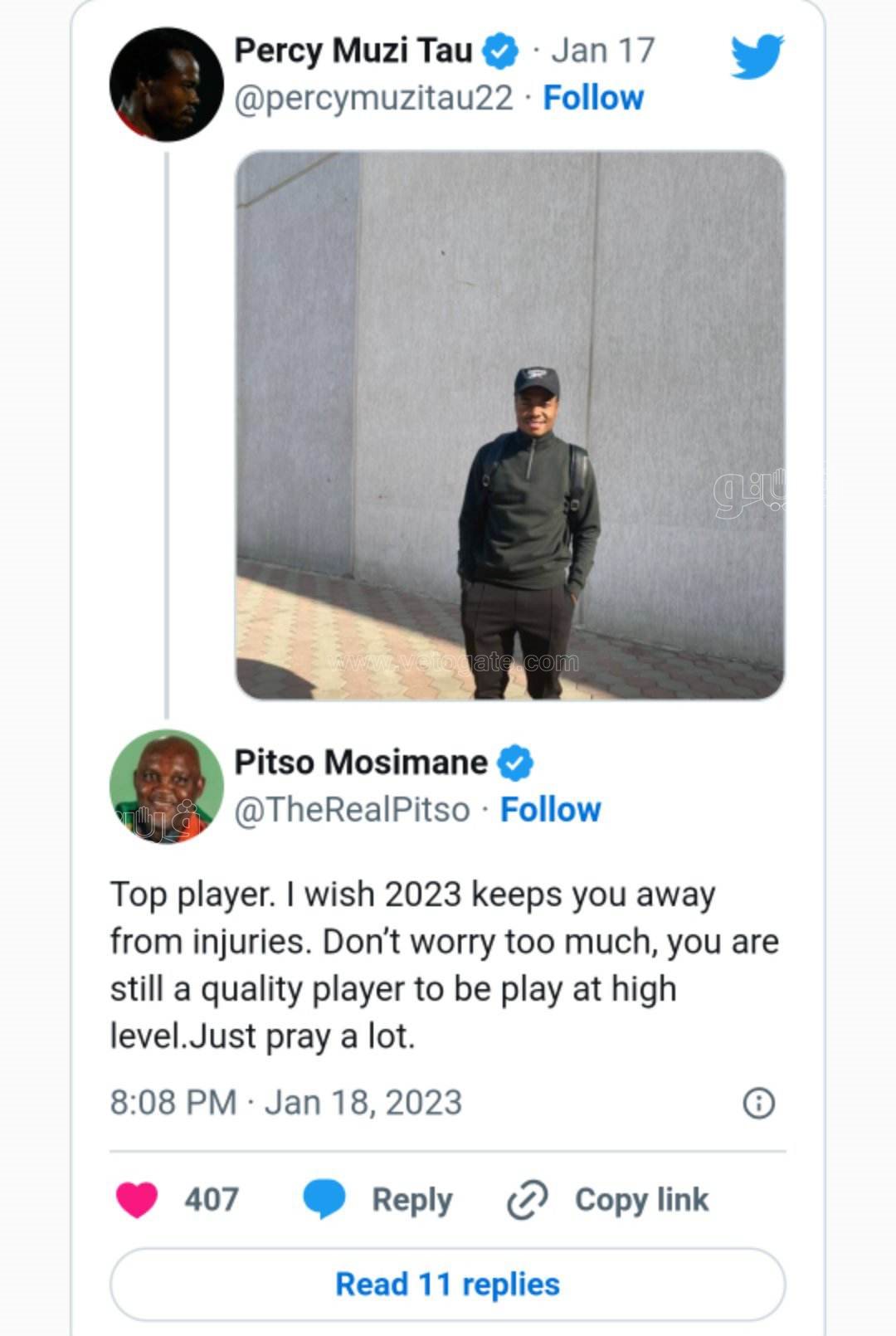 جاءت رسالة موسيماني في شكل تعليق على صورة قام بيرسي تاو بنشرها عبر صفحاته الرسمية على منصات التواصل الاجتماعي.