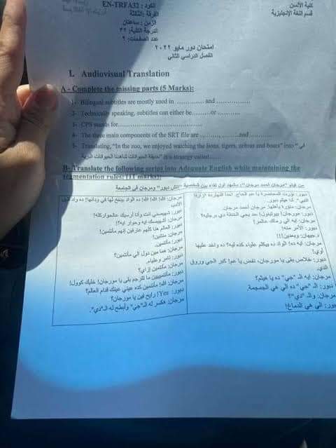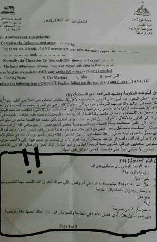 امتحان ألسن عين شمس، وتداول رواد موقع التواصل الاجتماعي فيس بوك جزءا من امتحان كلية ألسن عين شمس في مادة الدراسات الأسلوبية بقسم اللغة الإنجليزية،لوجود سؤال من أغنية البخت لمطرب الراب ويجز.