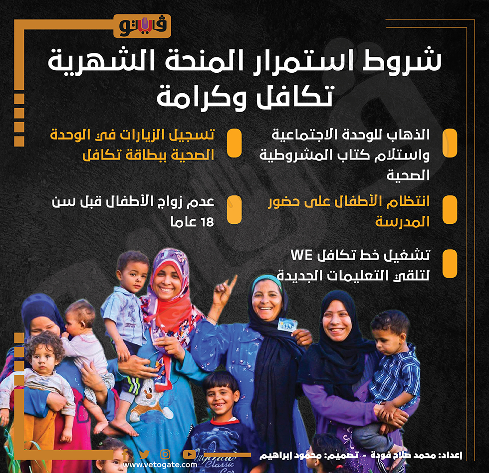 شروط استمرار المنحة الشهرية تكافل وكرامة (إنفوجراف) السبت 21/يناير/2023 - 12:54 م 1/21/2023 12:54:56 PM برنامج تكافل، فيتو - محمد صلاح فودة شارك طباعة 18 حجم الخط شارك طباعة المنحة الشهرية تكافل أسماء تكافل وكرامة برنامج تكافل وكرامة الأسرة المستفيدة من تكافل وكرامة شروط تكافل كرامة