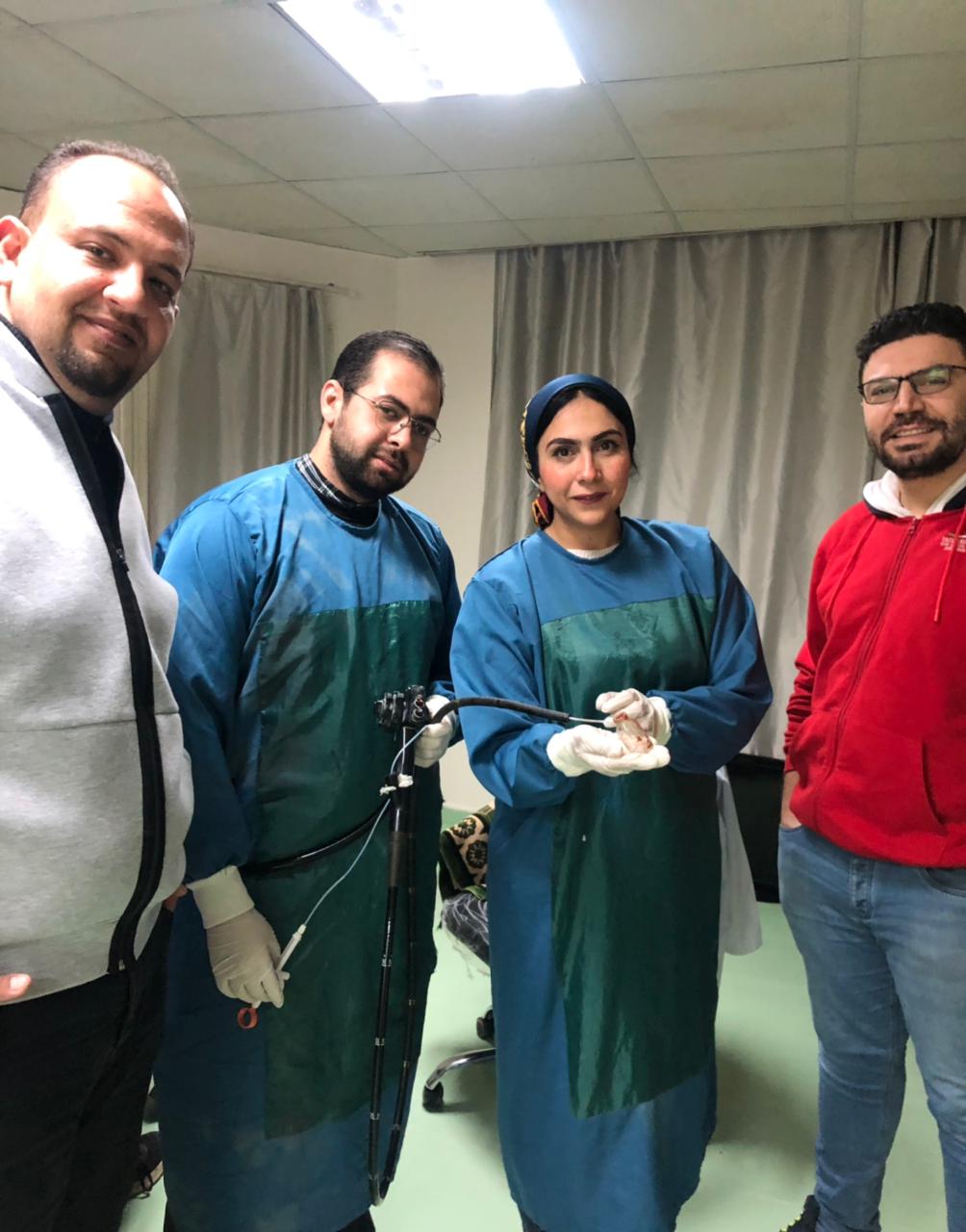وتشكل فريق طبي جراحي من وحدة المناظير من الدكتورة أسماء جميل مدرس بقسم الكبد والجهاز الهضمي والمناظير جامعة المنصورة والدكتور محمد نبيل أخصائى التخدير، محمود أشرف فنى المناظير، وأحمد خطاب