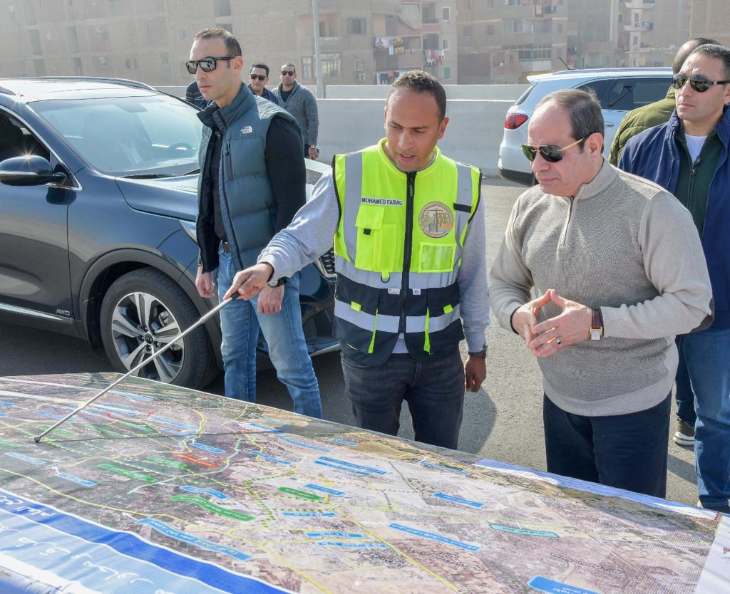 السيسي يتفقد مشروعات المحاور والطرق في الجيزة (صور)