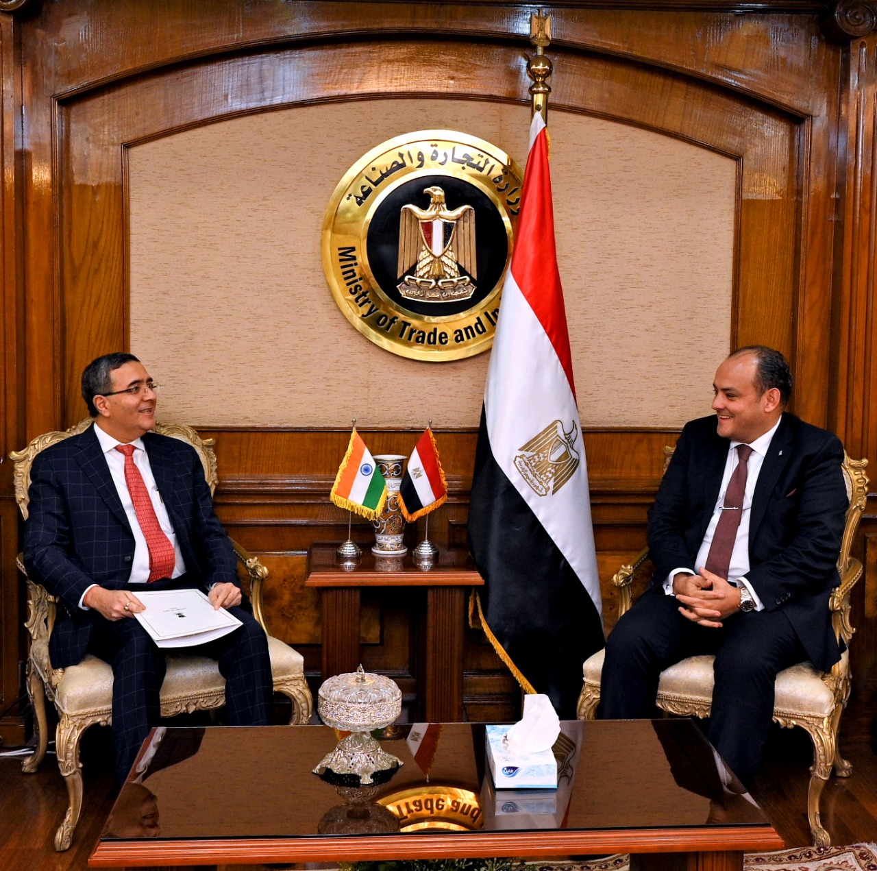التقى المهندس أحمد سمير وزير التجارة والصناعة، أجيت جوبتيه سفير الهند بالقاهرة حيث استعرض اللقاء كافة أوجة التعاون الاقتصادي المشترك بين البلدين وسبل الاستفادة من الإمكانات والمقومات الاقتصادية الكبيرة لكلا البلدين وترجمتها لمشروعات تعاون ملموسة تصب في مصلحة الاقتصادين المصري والهندي على حد سواء، كما تناول اللقاء عددا من الموضوعات والملفات الاقتصادية الدولية ذات الاهتمام المشترك، حضر اللقاء الوزير مفوض تجاري يحيى الواثق بالله رئيس جهاز التمثيل التجاري.