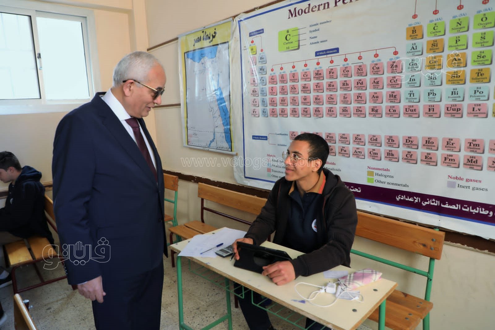 كما تفقد الوزير عددًا من لجان امتحان الصف الأول الثانوي، حيث يؤدي طلاب المدرسة وعددهم (92)طالبًا في (5) لجان امتحان مادة الفيزياء "فترة أولى" وامتحان مادة التاريخ "فترة ثانية"، حيث يجيب الطلاب عن أسئلة الاختيار من متعدد باستخدام التابلت، بينما يجيبون عن الأسئلة المقالية القصيرة ورقيًا.
