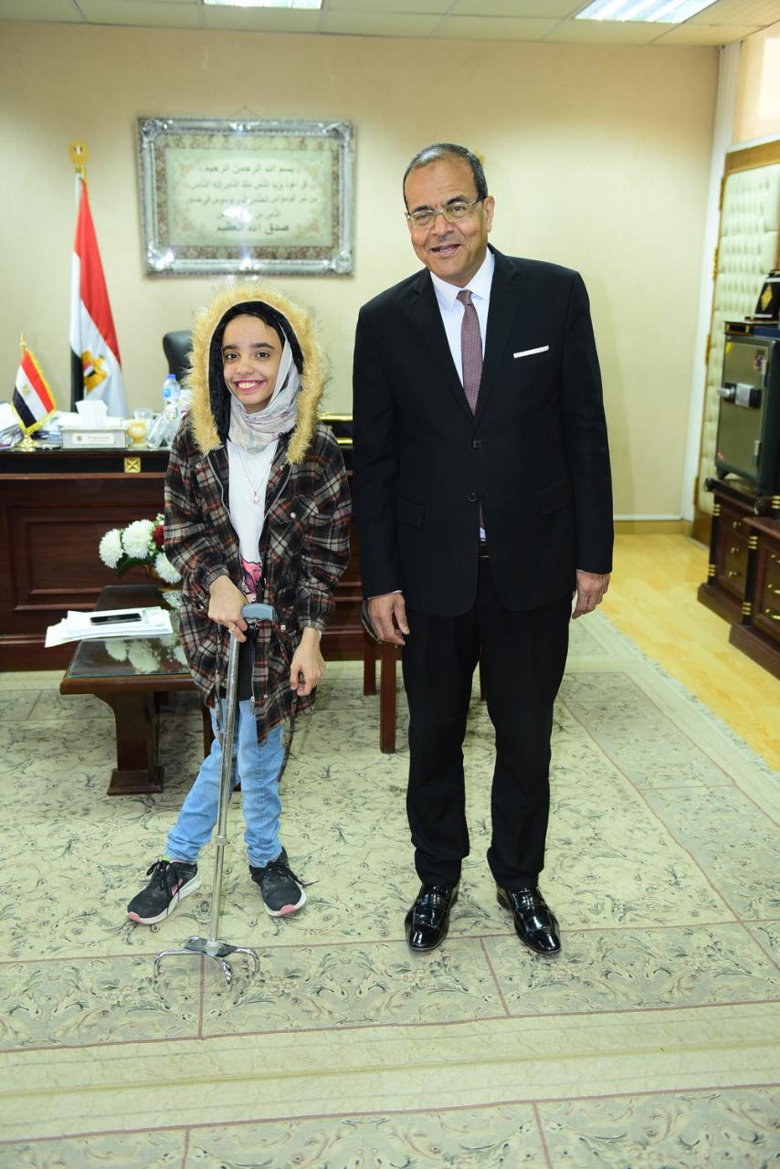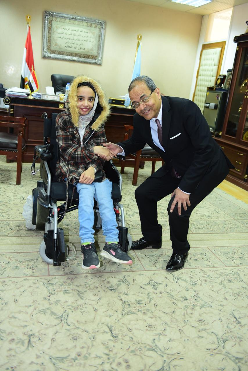 جامعة سوهاج تمنح طالبة من ذوي الهمم كرسيا كهربائيا متحركا (صور)