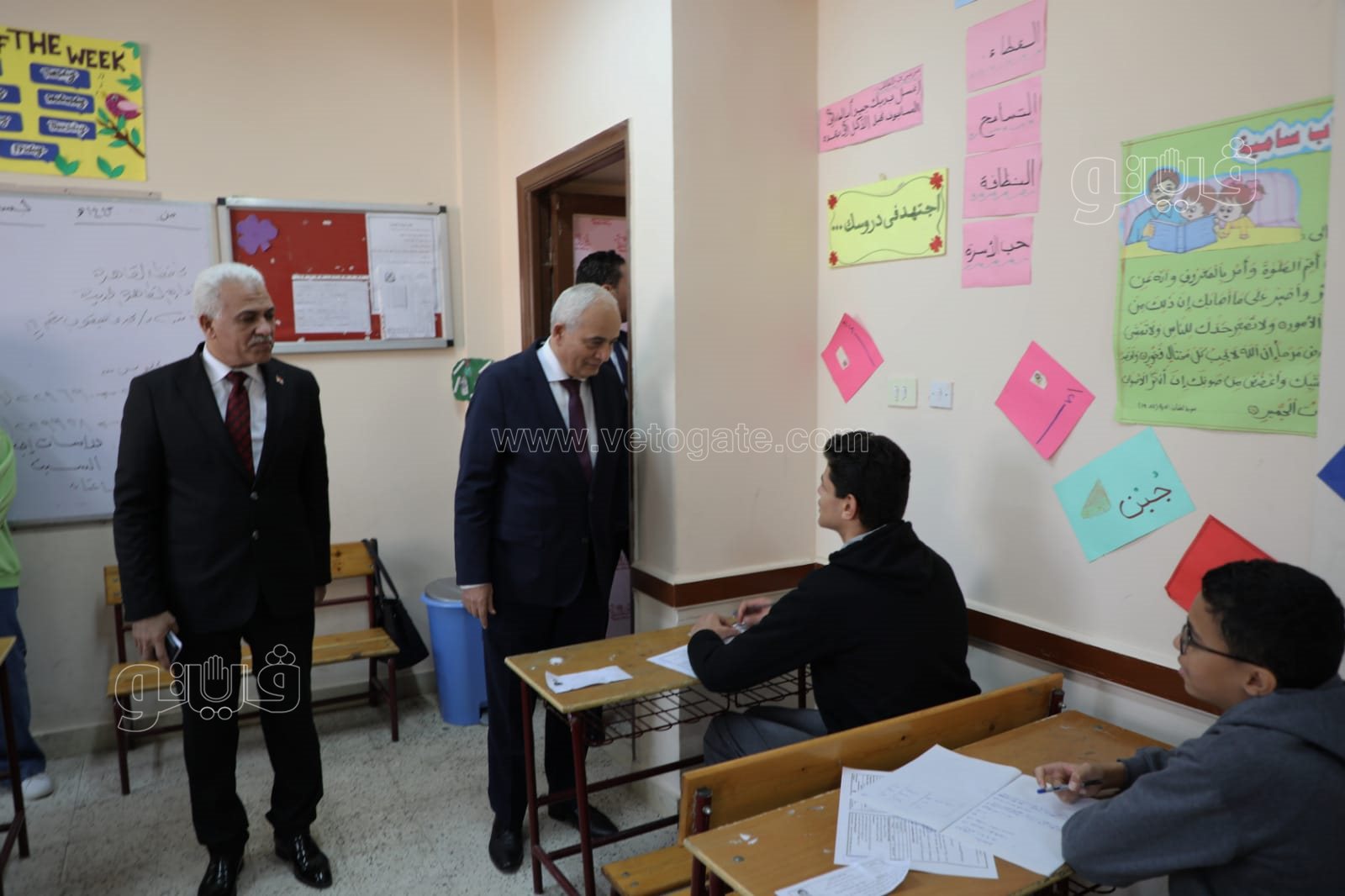 ورافق وزير التربية والتعليم في جولته أيمن موسى مدير مديرية التربية والتعليم بالقاهرة، وإيمان عبد الله مدير عام إدارة القاهرة الجديدة التعليمية، ونيفين الزيات مديرة المدرسة.