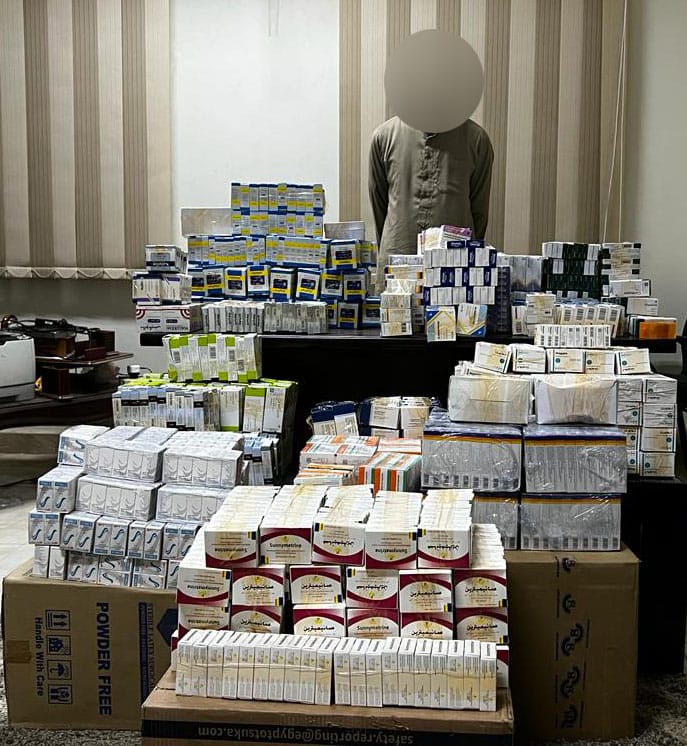 ضبط أحد الأشخاص - مقيم بدائرة قسم شرطة مصر القديمة حال استقلاله سيارة بدائرة قسم شرطة الجيزة، وبحوزته (216 قرص مخدر ومؤثر لعقاقير مختلفة - 3 روشتات طبية "مزورة" - خاتم شعار الجمهورية خاص بإحدى الجهات الحكومية "مزور" - مبلغ مالى - هاتف محمول).. وبتطوير مناقشته أرشد عن كمية أخرى من المواد المخدرة بداخل مسكنه بدائرة القسم عبارة عن (180 قرص مخدر - 66 روشتة طبية "مزورة" - 9 أكلاشيهات لأطباء "مزور" - 4 خاتم شعار الجمهورية خاص بإحدى الجهات الحكومية "مزور").