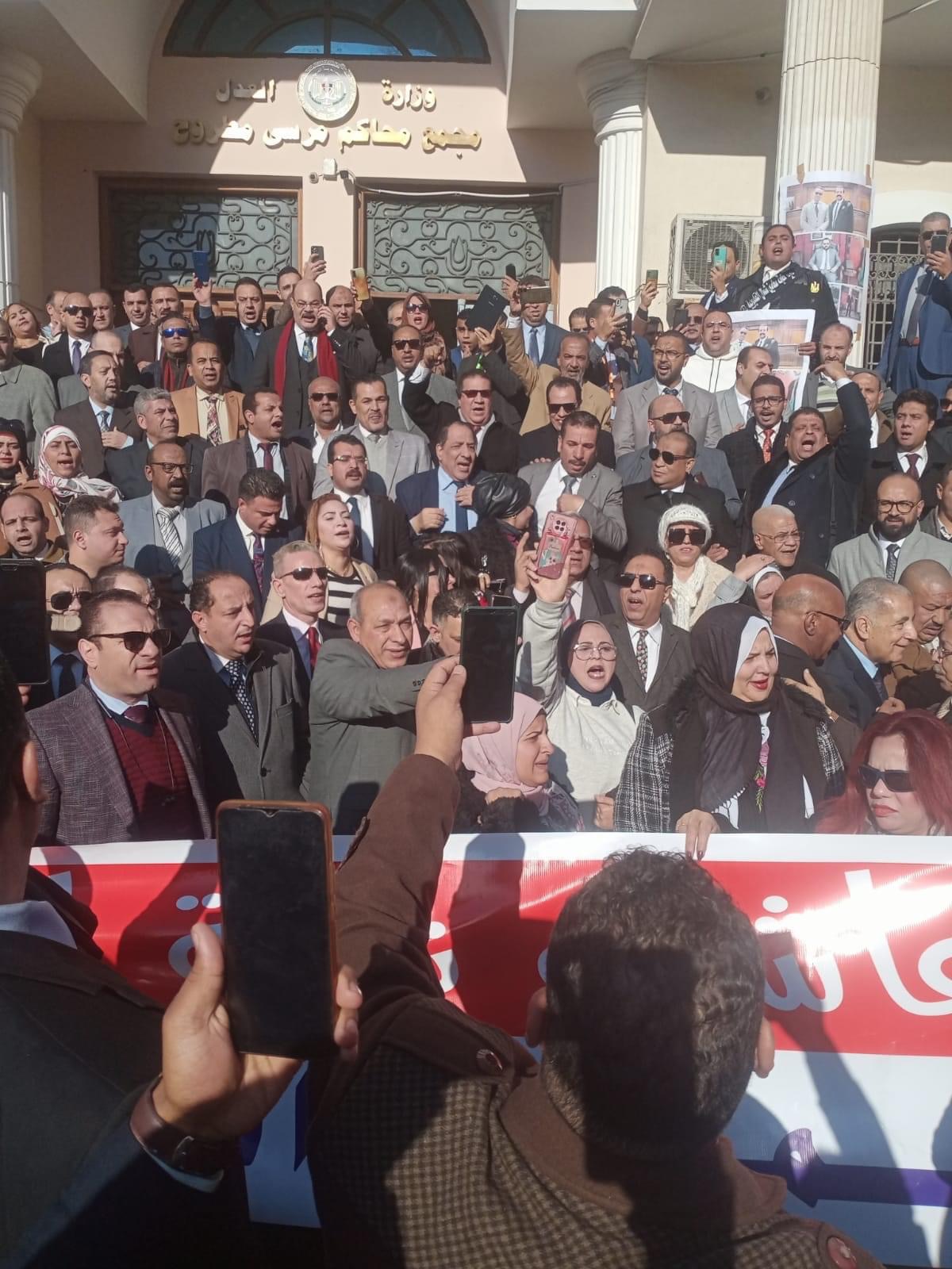 وقفة تضامنية لوفد محامي شمال القاهرة أمام محكمة مطروح (صور)