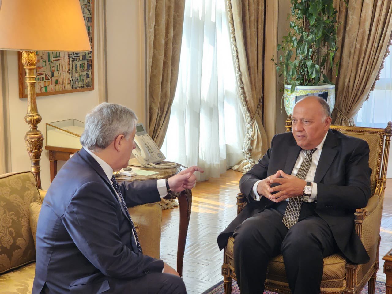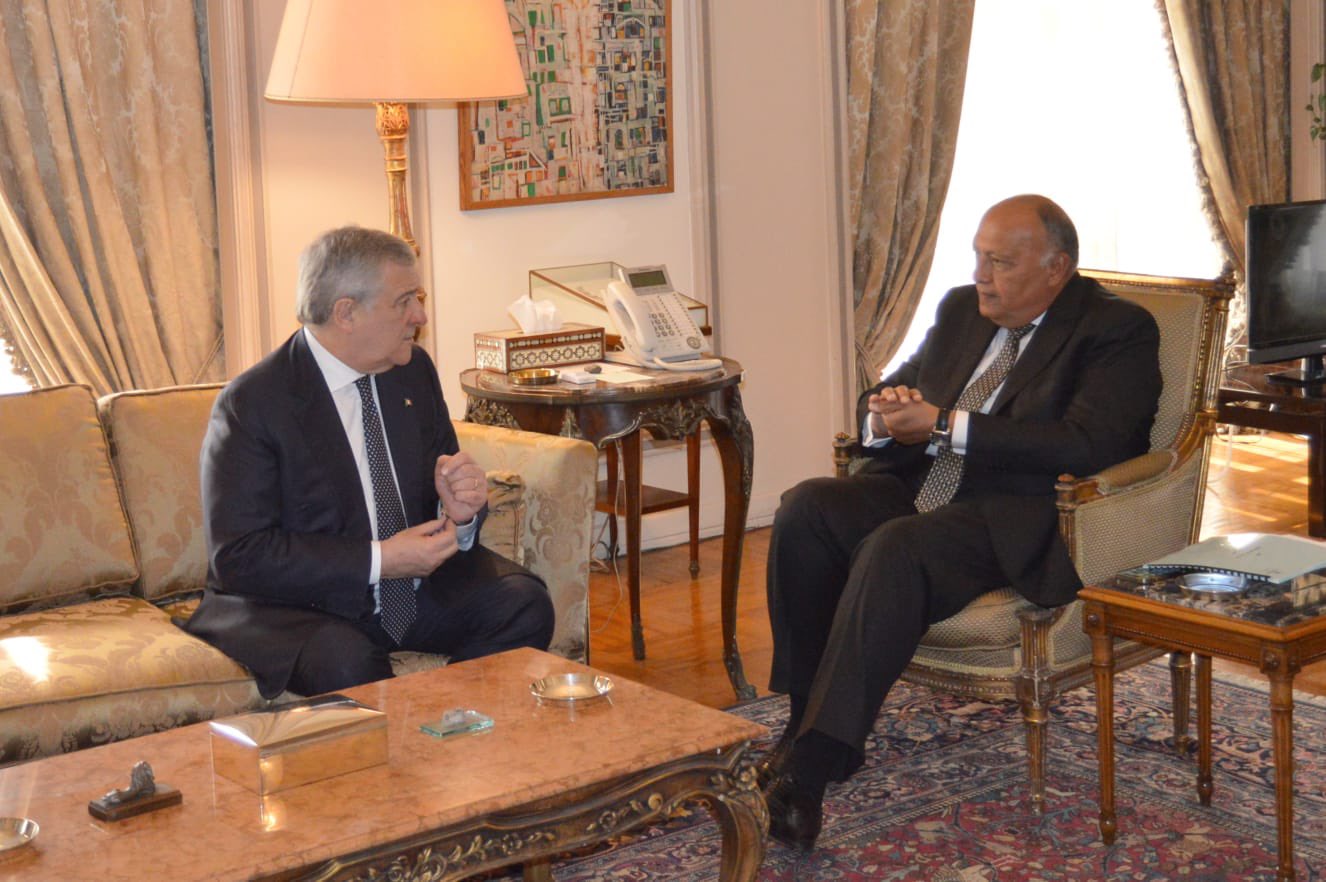 استقبل سامح شكرى وزير الخارجية، أنطونيو تاياني، نائب رئيس مجلس الوزراء ووزير الشئون الخارجية والتعاون الدولي الإيطالي.