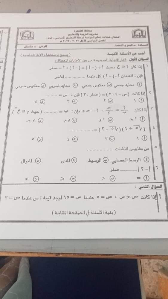 حل امتحان الجبر، وتنوعت الورقة الامتحانية بين أسئلة الاختيار من متعدد وأكمل، وغيرها من المسائل الحسابية