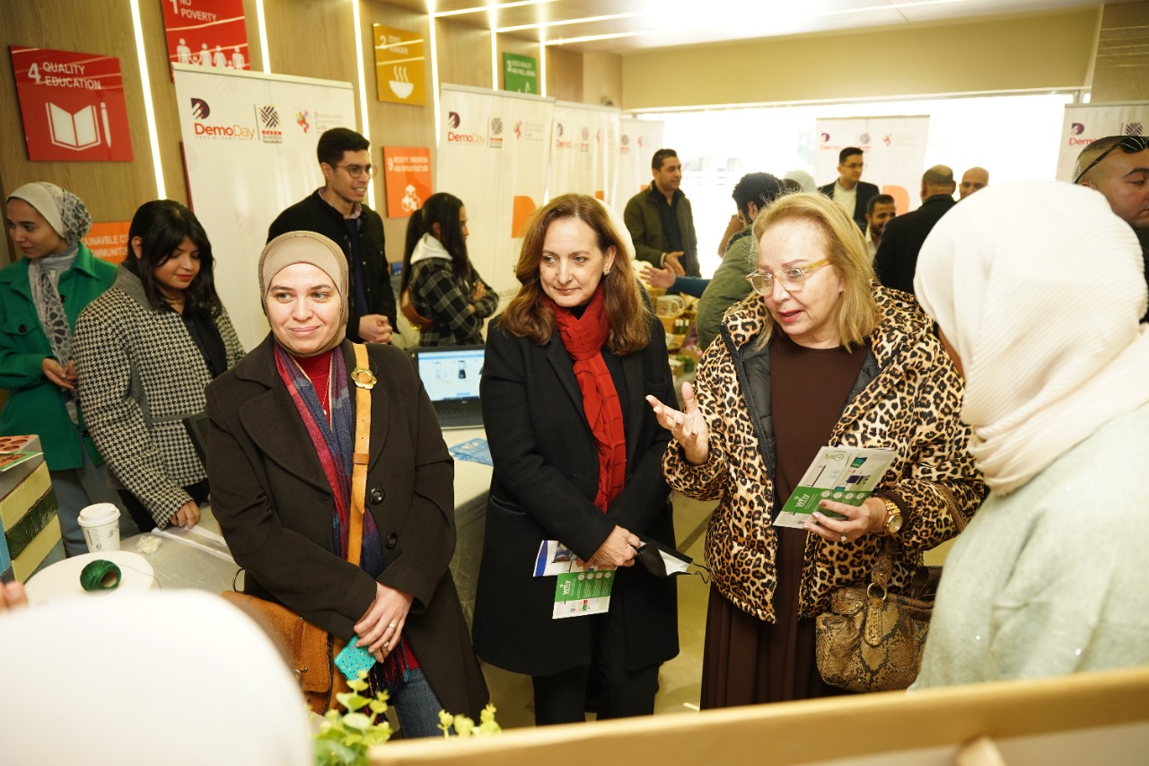 وخلال الحفل تم توزيع شهادات التقدير للمشاركين في برنامج الاقتصاد الأخضر وعددهم 28 مشارك يمثلوا سبع مشروعات، كما تفقدت الدكتورة شريفة شريف، معرض الشركات الناشئة الذي تم من خلاله عرض منتجات هذه الشركات.