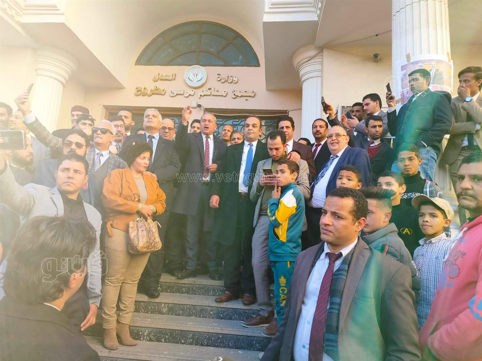 وشهدت مدينة مرسى مطروح، توافد عدد كبير من المحامين بالنقابات الفرعية والنقابة العامة لحضور الجلسة ودعم زملائهم، كما قررت نقابة المحامين العامة بتشكيل لجنة دفاع على زملائهم من المقرر حضورها جلسة غدًا.