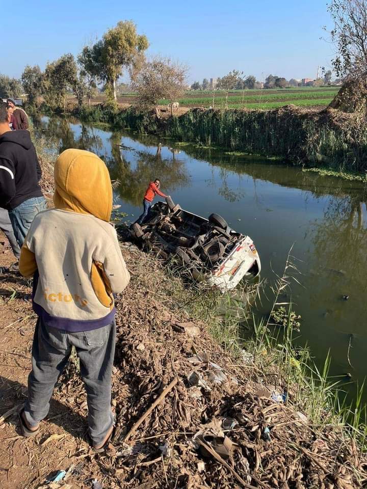 الصور الأولى لحادث انقلاب ميكروباص في مصرف بالغربية