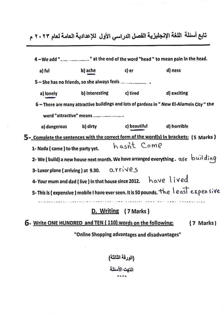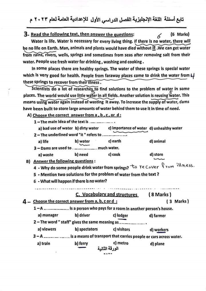 وننشر لكم اجابة امتحان اللغة الانجليزية للشهادة الاعدادية 2023 والتي يبحث عنها الطلاب.