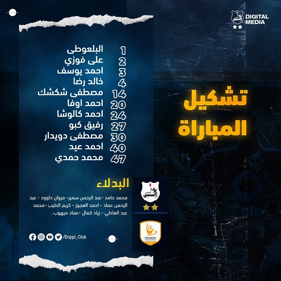 ويبدأ طلعت يوسف المدير الفني لفريق نادي إنبى مباراة فاركو ببطولة الدوري المصري الممتاز 2023 بتشكيل مكون كالتالى: