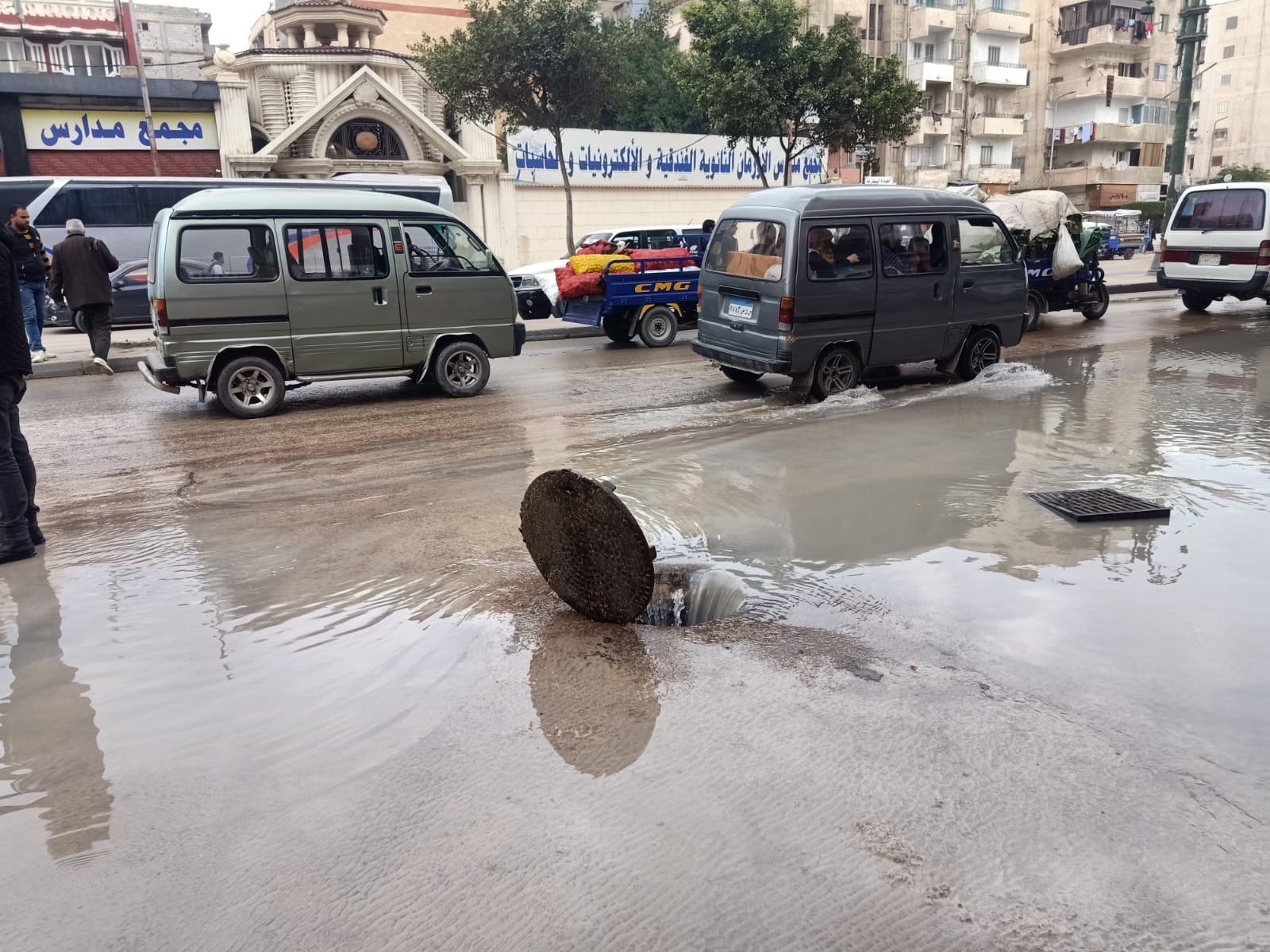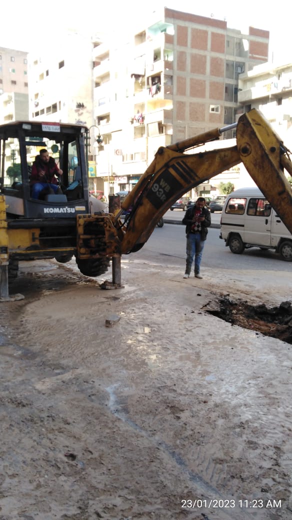 انفجار ماسورة مياه في أبو يوسف وكسر محطة اللبان و٣ آخرين بالعجمي (صور)