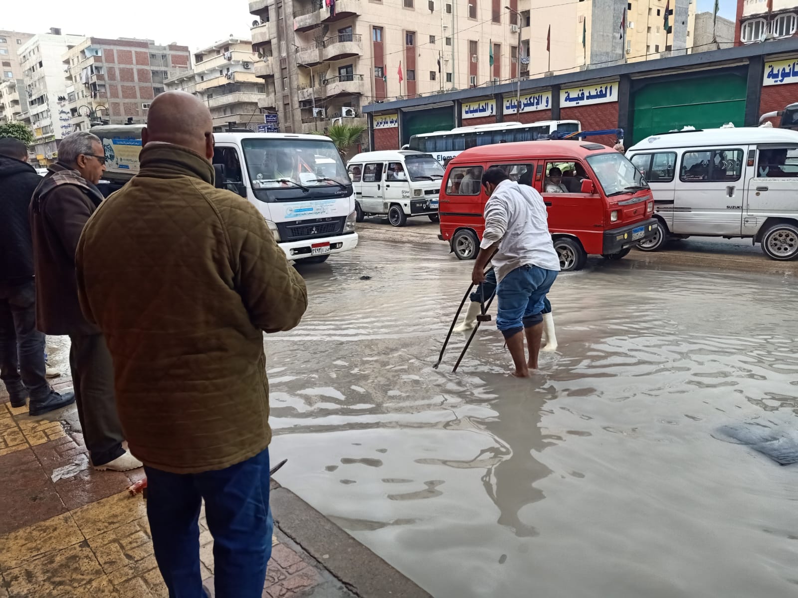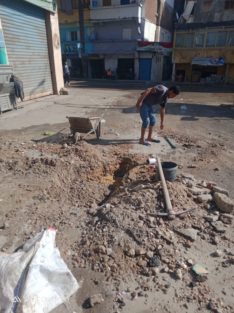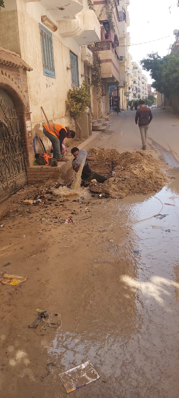 وجري إصلاح خط ٤بوصه بقطاع اكتوبر بشارع فرن الشندويلي، من قبل عمال مرفق مياه الساحل في وجود القطاع