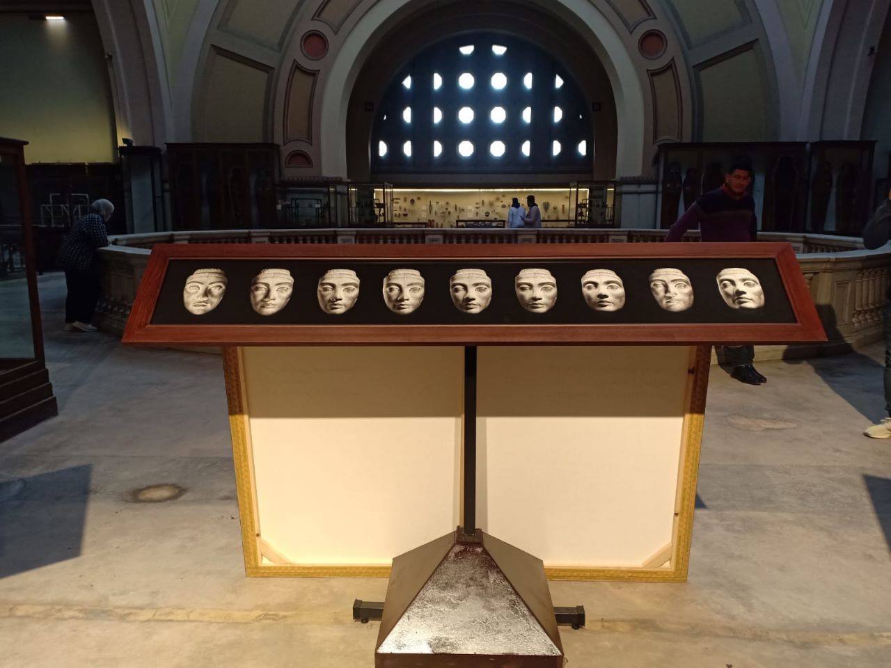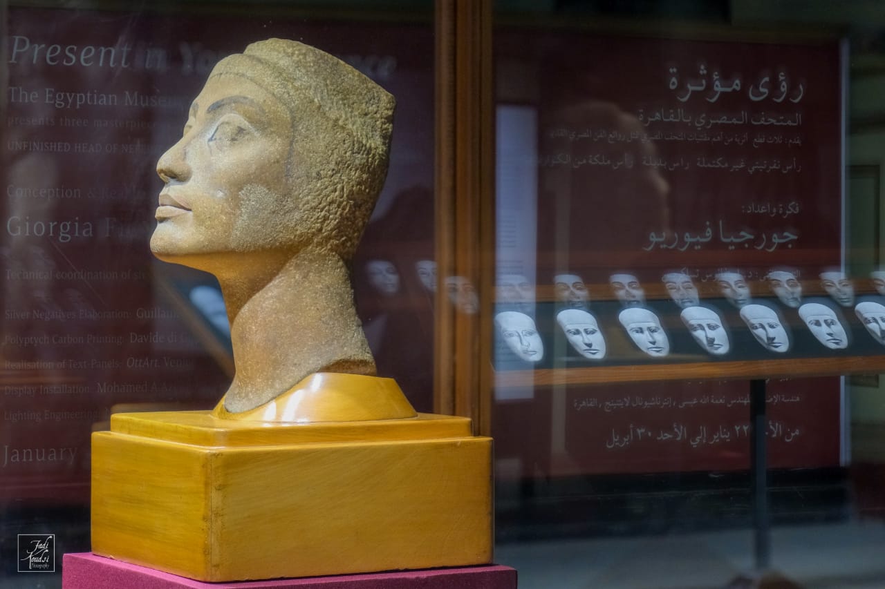 وأشارت صباح عبد الرازق مدير عام المتحف المصري بالتحرير إن هذه القطع تضم الرأس غير المكتمل للملكة نفرتيتي من الكوارتزيت البني، والتي عثر عليها فى تل العمارنة عام 1933من حفائر جمعية استكشاف مصر وترجع لعصر الدولة الحديثة، الأسرة الثامنة عشر، عصر الملك إخناتون، ورأس بديل يرجع لعهد الدولة القديمة عثر عليها عالم الآثار الأمريكي جورج ريزنر بمنطقة أهرامات الجيزة، ورأس لملكة من الكوارتزيت البنى ترجع لعصر الدولة الحديثة عثر عليها عام 1915، أسفل أساس قصر الملك مرنبتاح بمنف.