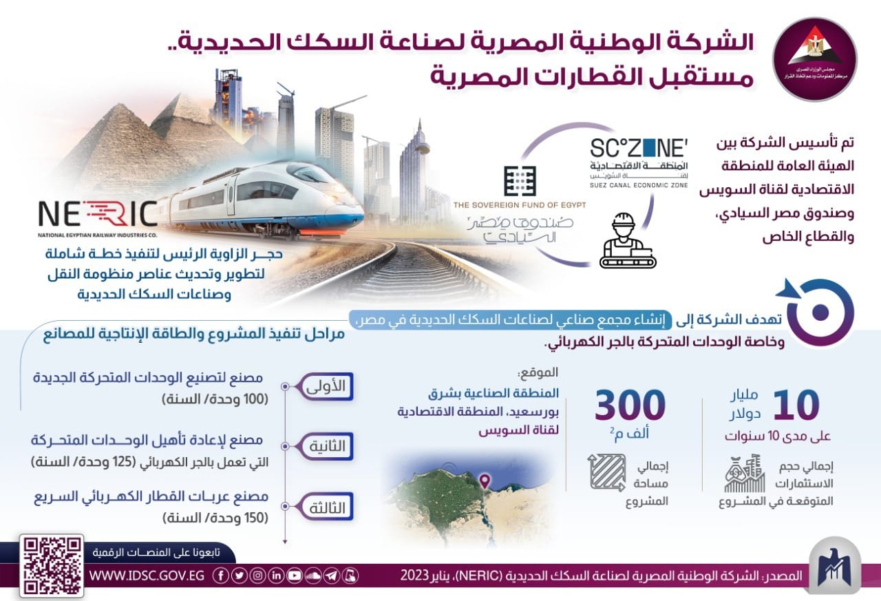 نشر مركز المعلومات ودعم اتخاذ القرار بمجلس الوزراء انفوجراف جديد تحت عنوان "الشركة الوطنية المصرية لصناعة السكك الحديدية.. مستقبل القطارات المصرية".