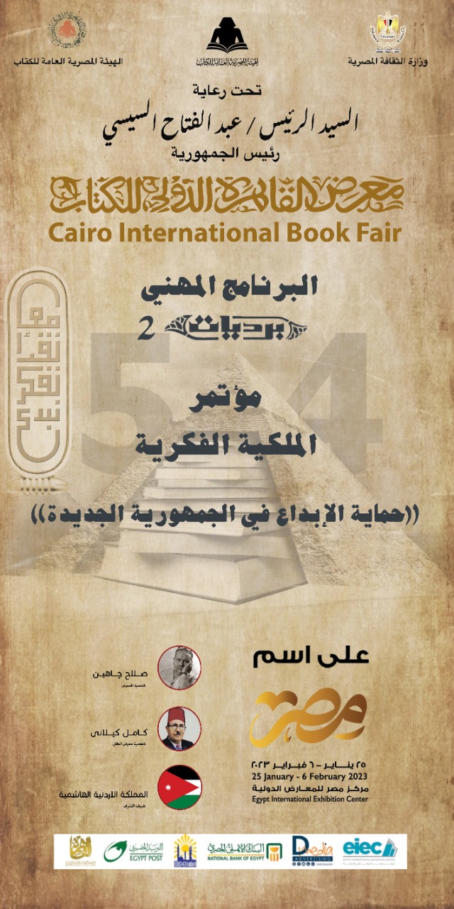 ينظم معرض القاهرة الدولي للكتاب في دورته الـ 54، في العاشرة صباح يوم الخميس 26 يناير، مؤتمرًا للملكية الفكرية تحت شعار (حماية الإبداع في الجمهورية الجديدة).