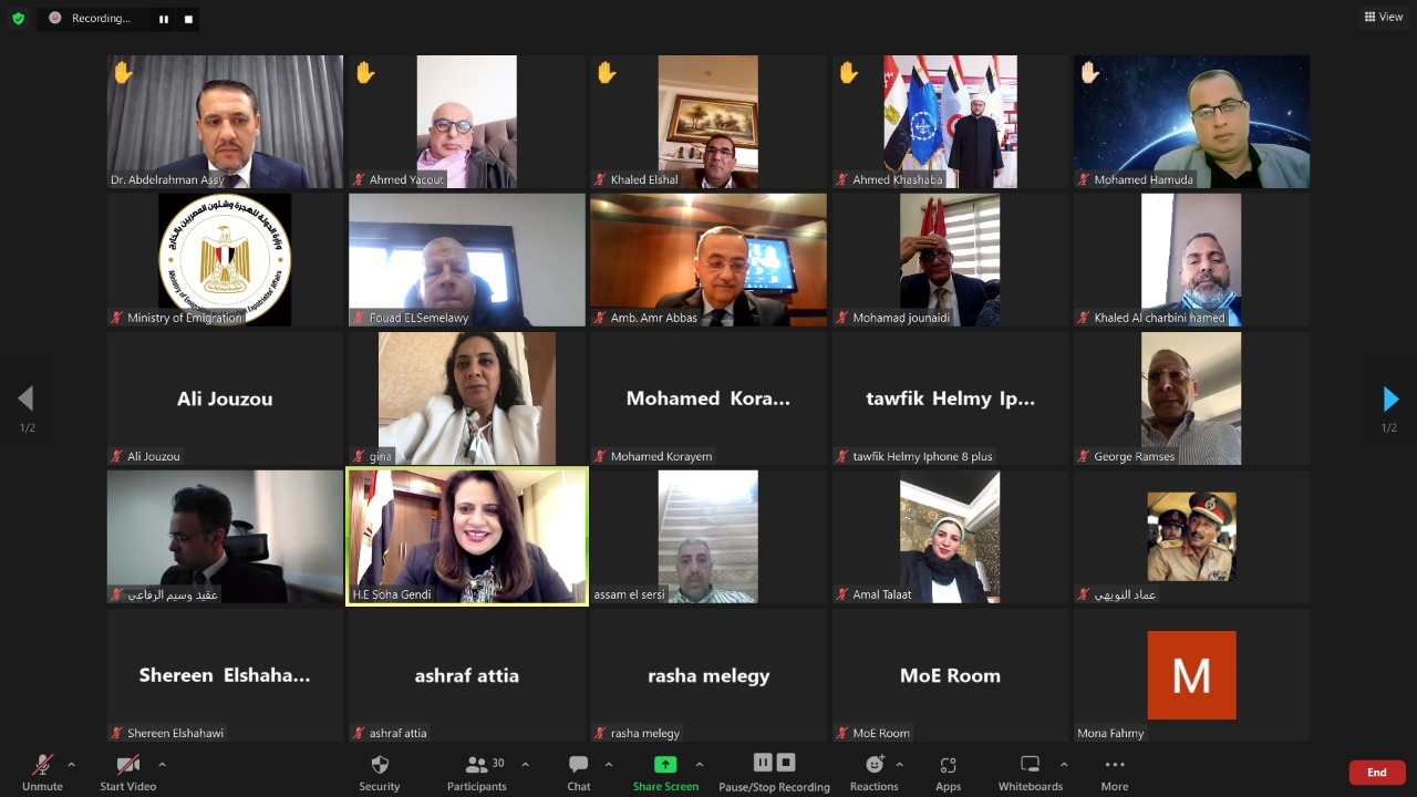 التقت السفيرة سها جندي وزيرة الدولة للهجرة وشئون المصريين بالخارج أعضاء ورموز من الجالية المصرية في لبنان وسلطنة عمان، عبر تطبيق "زووم" الإلكتروني.