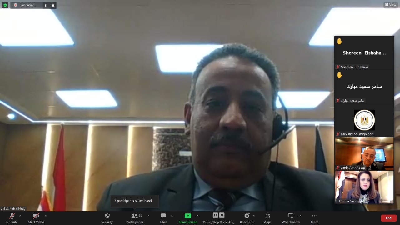 كما ذكرت السفيرة سها جندي، جهود الوزراة في ملف الهجرة غير الشرعية وما يتم من تأهيل وتدريب للشباب من خلال المركز المصري الألماني للوظائف والهجرة وإعادة الإدماج وكذلك تنظيم ملتقيات للجيلين الثاني والثالث من أبناء المصريين بالخارج لربطهم بوطنهم مصر، وجهود مركز وزارة الهجرة للحوار لشباب الدارسين بالخارج.