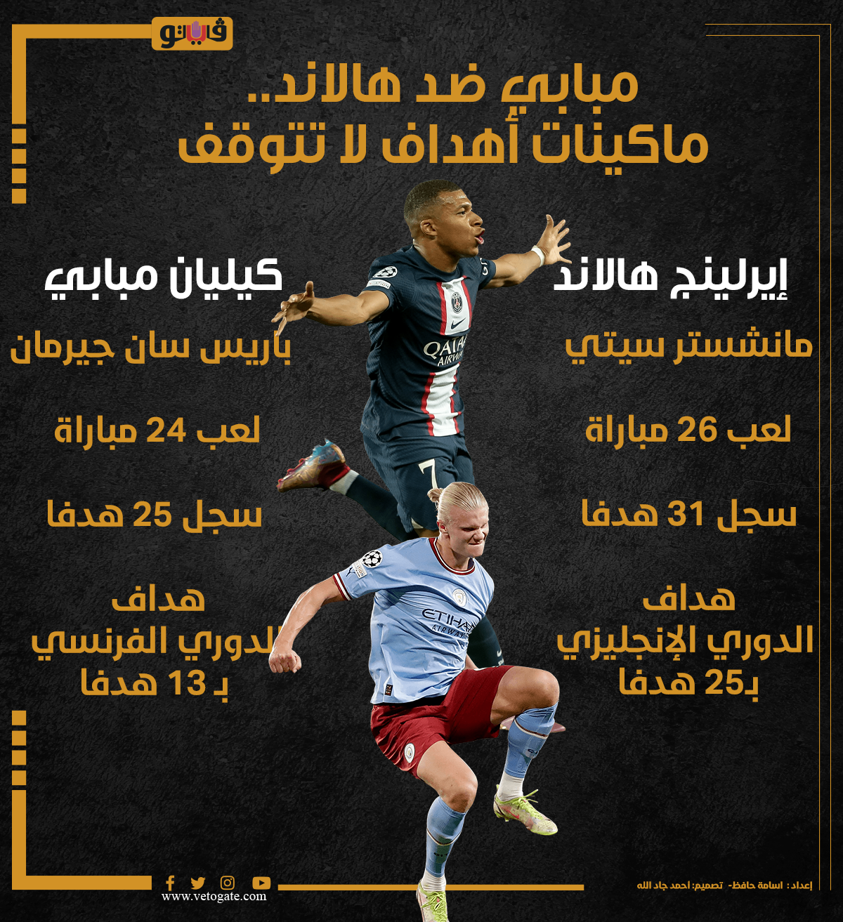 مبابي ضد هالاند.. ماكينات أهداف لا تتوقف (انفوجراف)