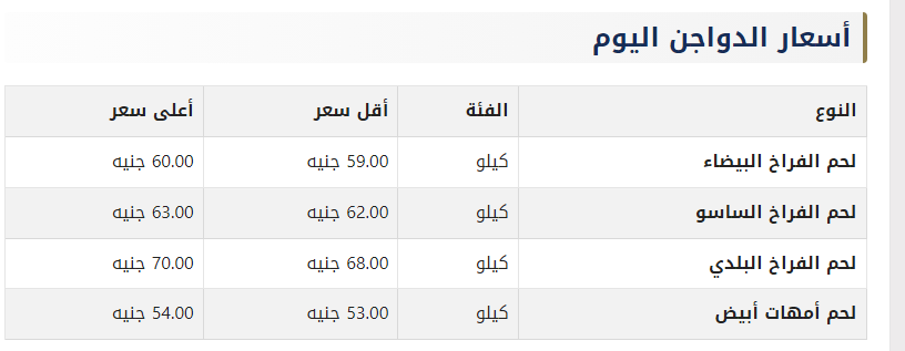 وجاء سعر الدواجن اليوم في مصر الثلاثاء وفقًا لآخر تحديث لأسعار بورصة الدواجن في مصر وبورصة الدواجن العمومية كالتالي.