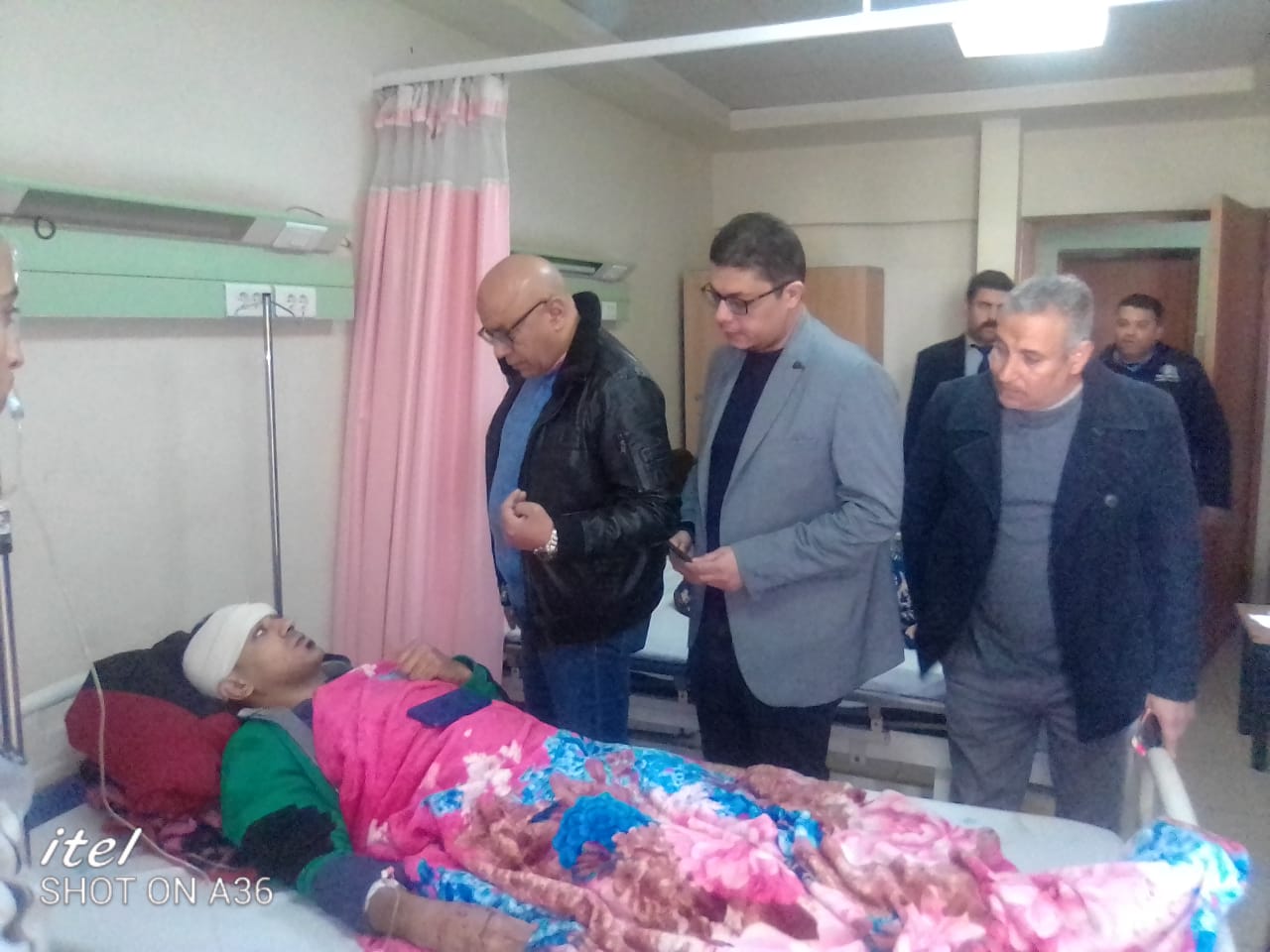 وتابع وكيل وزارة الصحة حالة المصابين للاطمئنان على كافة الإجراءات الطبية المقدمة لهم، والتي تراوحت ما بين كدمات وسحجات واشتباه كسور واشتباه ما بعد الإرتجاج.