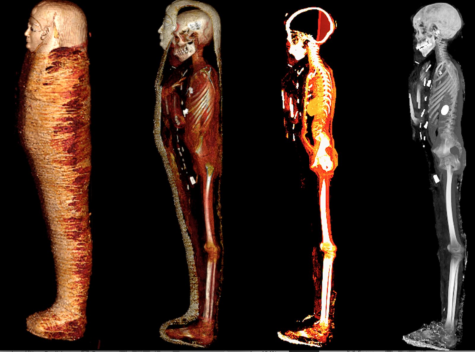 وأكدت الدكتورة سحر سليم أن الدراسة كشفت عن وجه المومياء لأول مرة بعد إزالة اللفائف بشكل افتراضي بتقنية الأشعة المقطعية، حيث أتاحت الدراسة فرصة فريدة لاكتشاف أسرار تحنيط المومياء دون المساس باللفائف، وكما تركها المصريين القدماء.