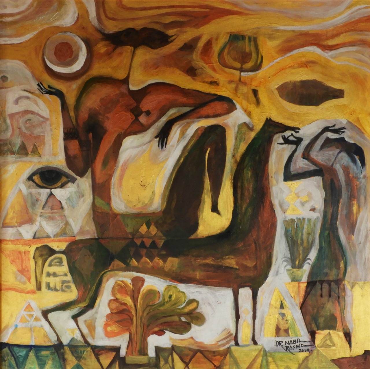 ومن بين ما خطه الفنان نبيل راشد لهذا المعرض.. "يحدث الإبداع بشكل تلقائي عندما تتفاعل الخبرة التي تتراكم مع المعرفة والخيال وينتج عنها مهارات التفكير الإبداعي، فالإنسان هو الكائن الوحيد الذي لديه القدرة على التفكير لأنه يمتلك المشاعر والأحاسيس وطرق التعبير لتخرج إلى عالم الخيال الذي يحدث تأثيرًا معنويًا زاخرًا بالألوان والظلال، وبين الوهم والحقيقة نصل إلى إيجاد العمل الذي يُشبع المتعة النفسية والفنية والفكرية التي تتدفق معها الكثير من الفرضيات والمقارنات والتخيلات لتصل إلى حالة من الاستقرار والمصالحة مع الذات".