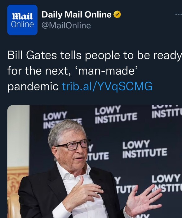 بدأت المخاوف مع إياد الحمود الذي قال: "بيل جيتس" يلمّح إلى أن الوباء القادم سيكون من صنع الإنسان وأكثر وحشية من كورونا، ووعد بأنه سيتبرع بنصف ثروته لأسباب نبيلة ولأجل الخير حسب الخبر. ذكر ذلك خلال حديثه مع معهد "لوي" الأسترالي وطالب السياسيين تنحية خلافاتهم والاستعداد للجائحة القادمة لتسريع إجراءات الوقاية باللقاحات".