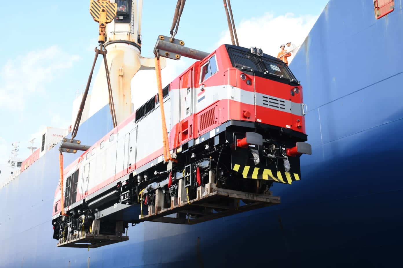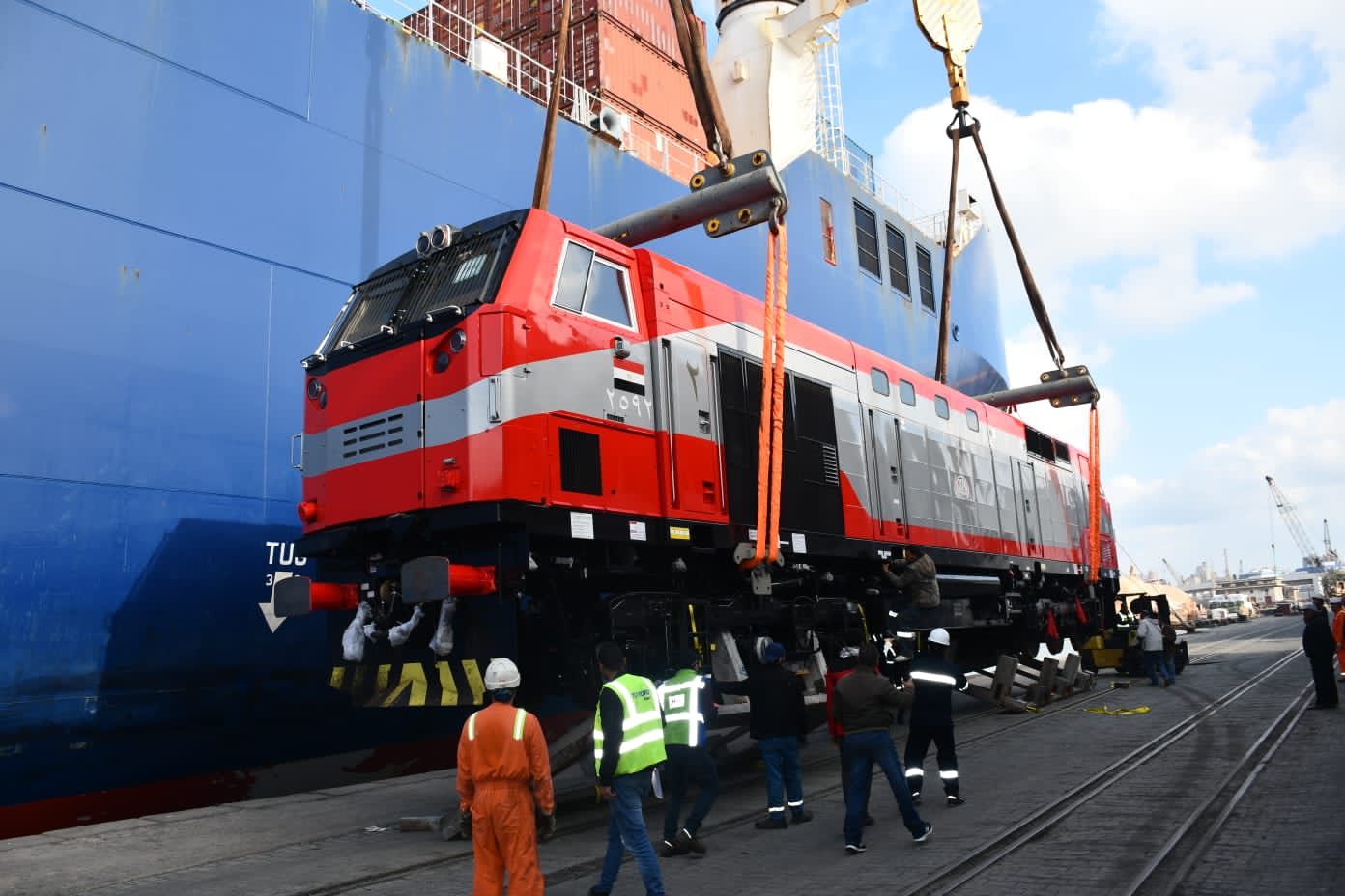 وزير النقل، أعلن الفريق مهندس كامل الوزير وزير النقل عن استقبال ميناء الإسكندرية أول جرار سكة حديد أمريكي جديد لميناء الأسكندرية ضمن صفقة تصنيع وتوريد 100 جرار جديد لصالح هيئة السكك الحديدية ضمن العقد المبرم مع شركة وابتك الأمريكية «جنرال إلكتريك سابقًا» بتكلفة إجمالية قدرها 247.3 مليون يورو شاملة الضمان والصيانة وقطع الغيار للجرارات لمدة 11 سنة وبدعم وتمويل من بنك الإعمار الأوروبي.