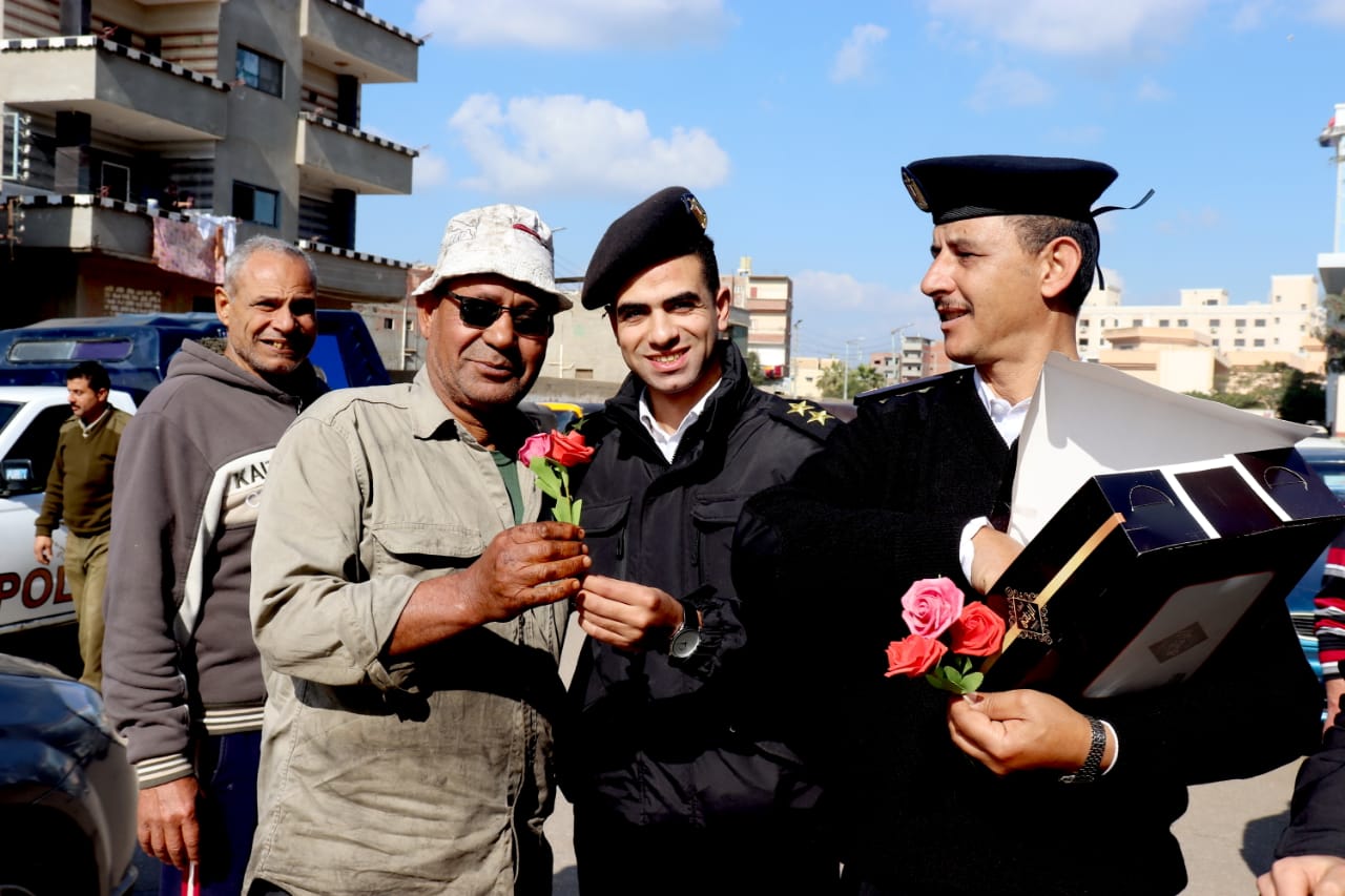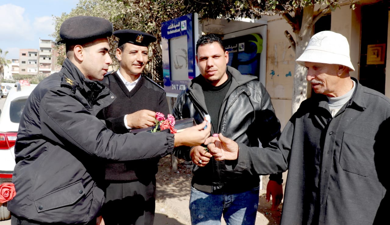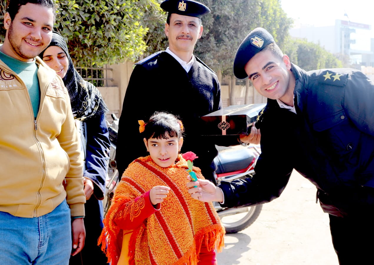 الشرطة توزع ورود وشيكولاتة على أهالي بني عبيد في الدقهلية (صور)