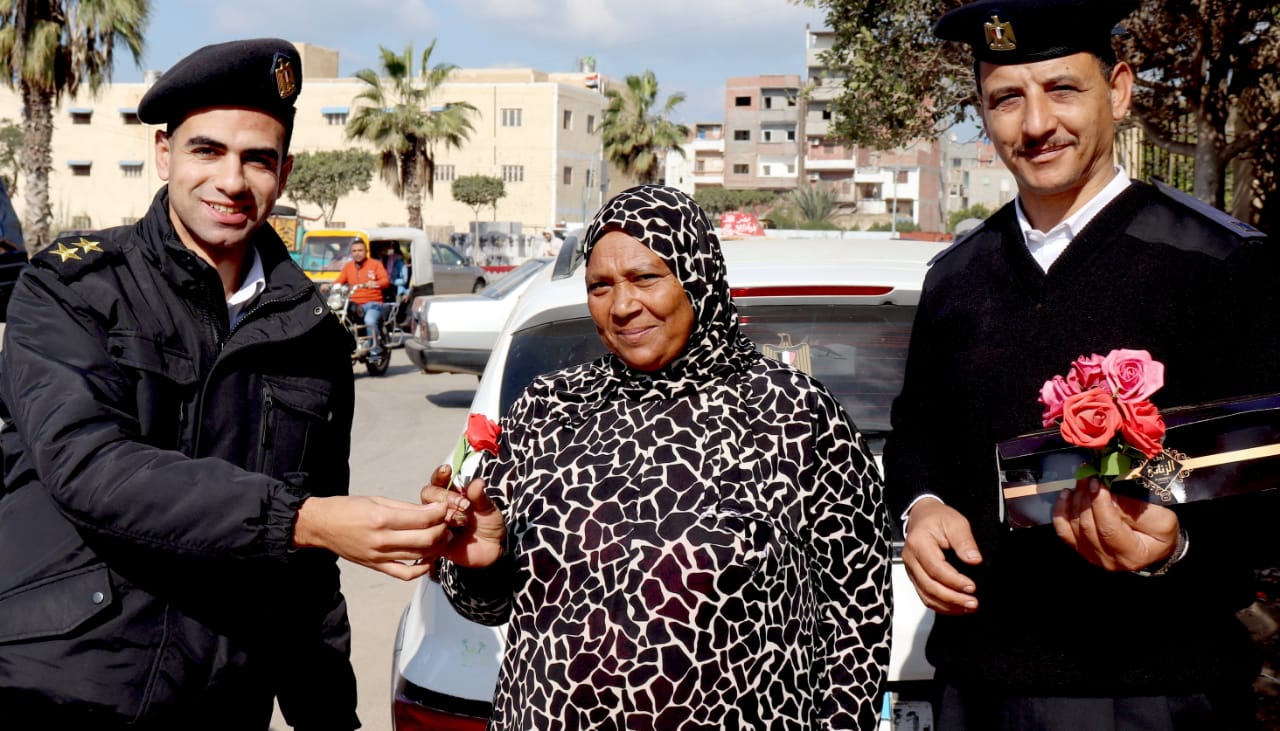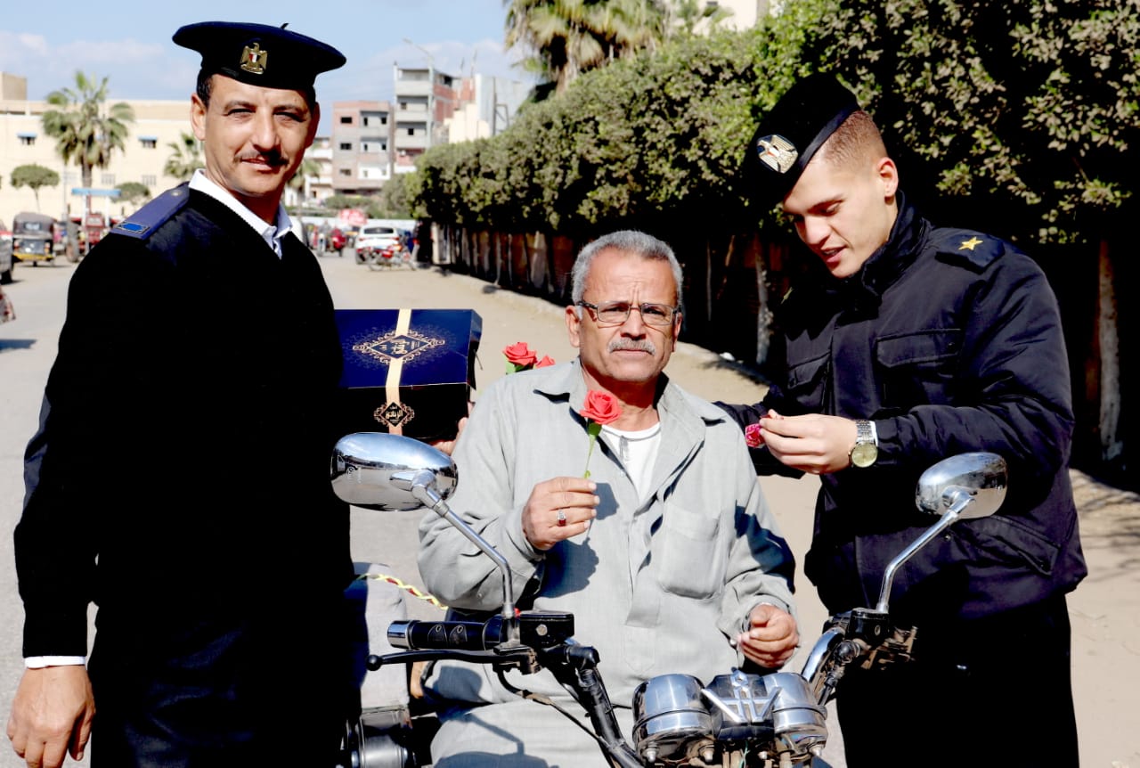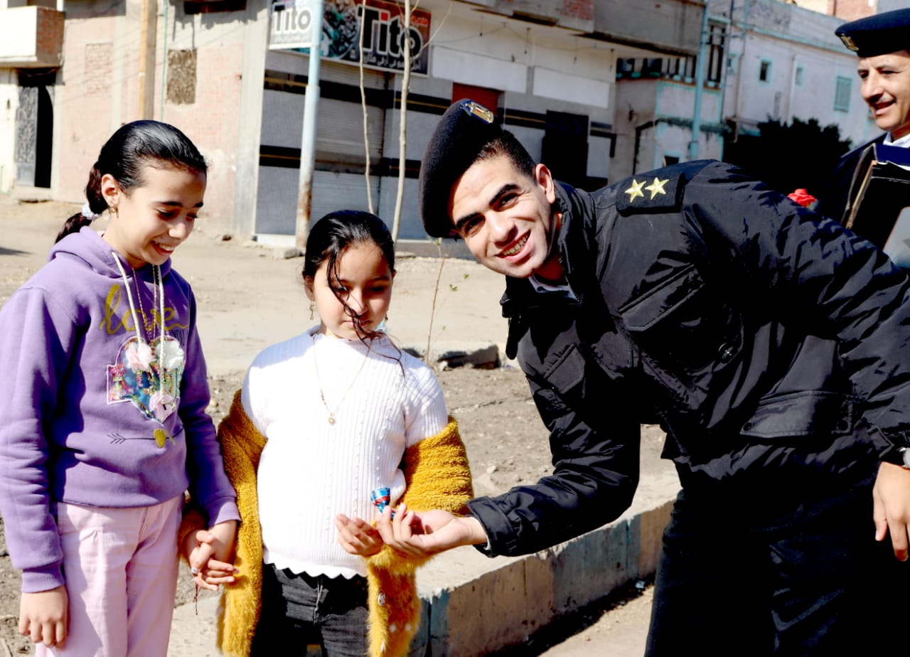 الشرطة توزع ورود وشيكولاتة على أهالي بني عبيد في الدقهلية (صور)
