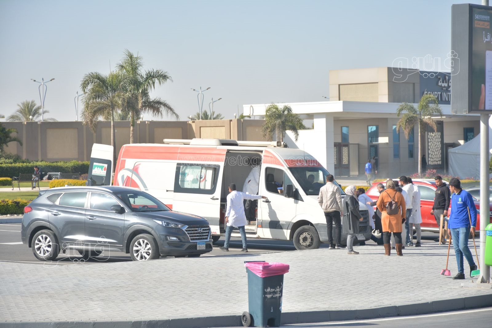 وانتشرت سيارات الإسعاف أمام قاعات المعرض والذي فتح أبوابه للجمهور صباح اليوم الخميس في أول أيامه للجمهور، حيث يشهد حضورا جماهيريا كبيرا.