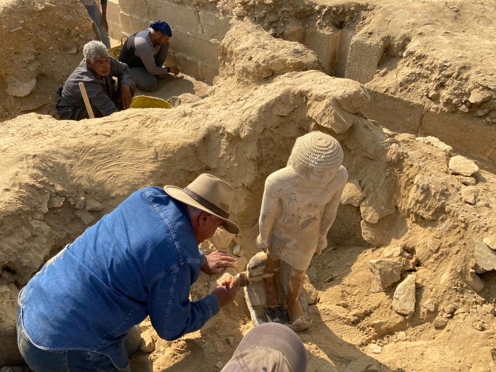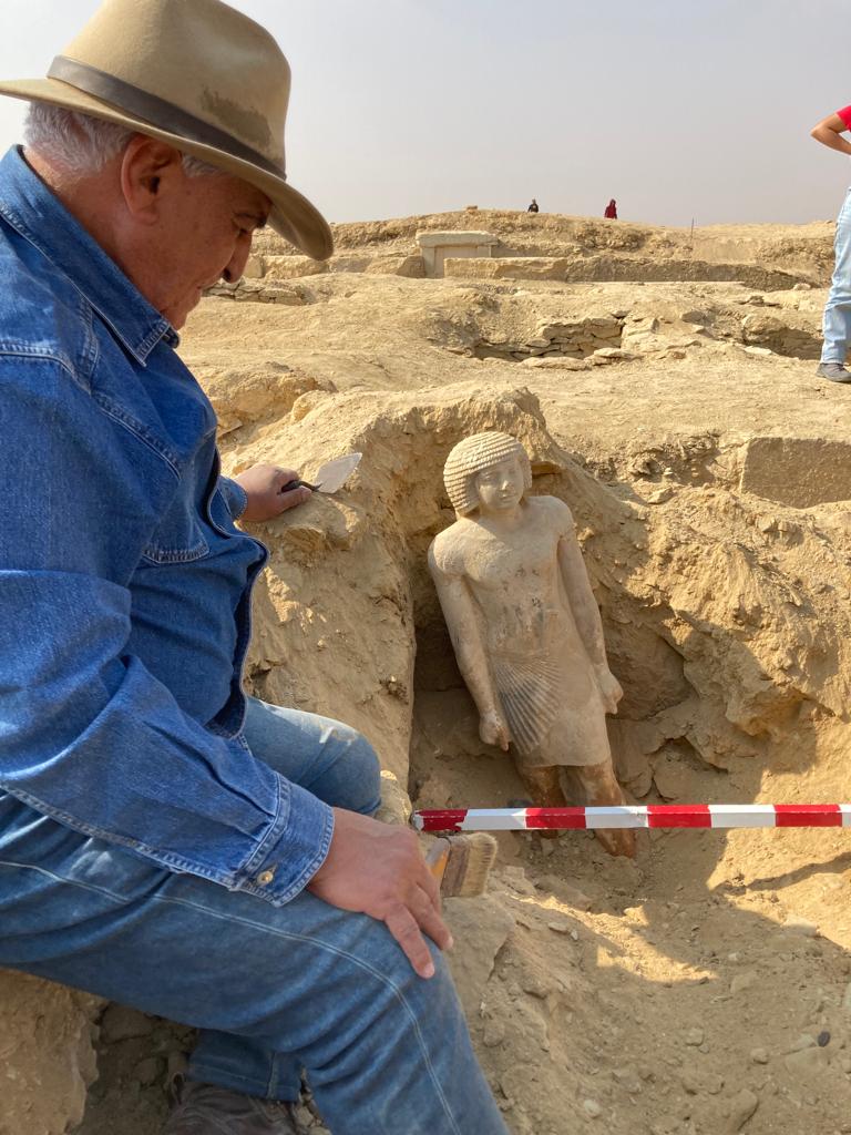 وأشار الي أنه تم العثور علي تمثال لشخص يظهر واقفا وبجواره زوجته تمسك بقدمه وإلى الجانب الآخر ابنته تحمل أوزة.